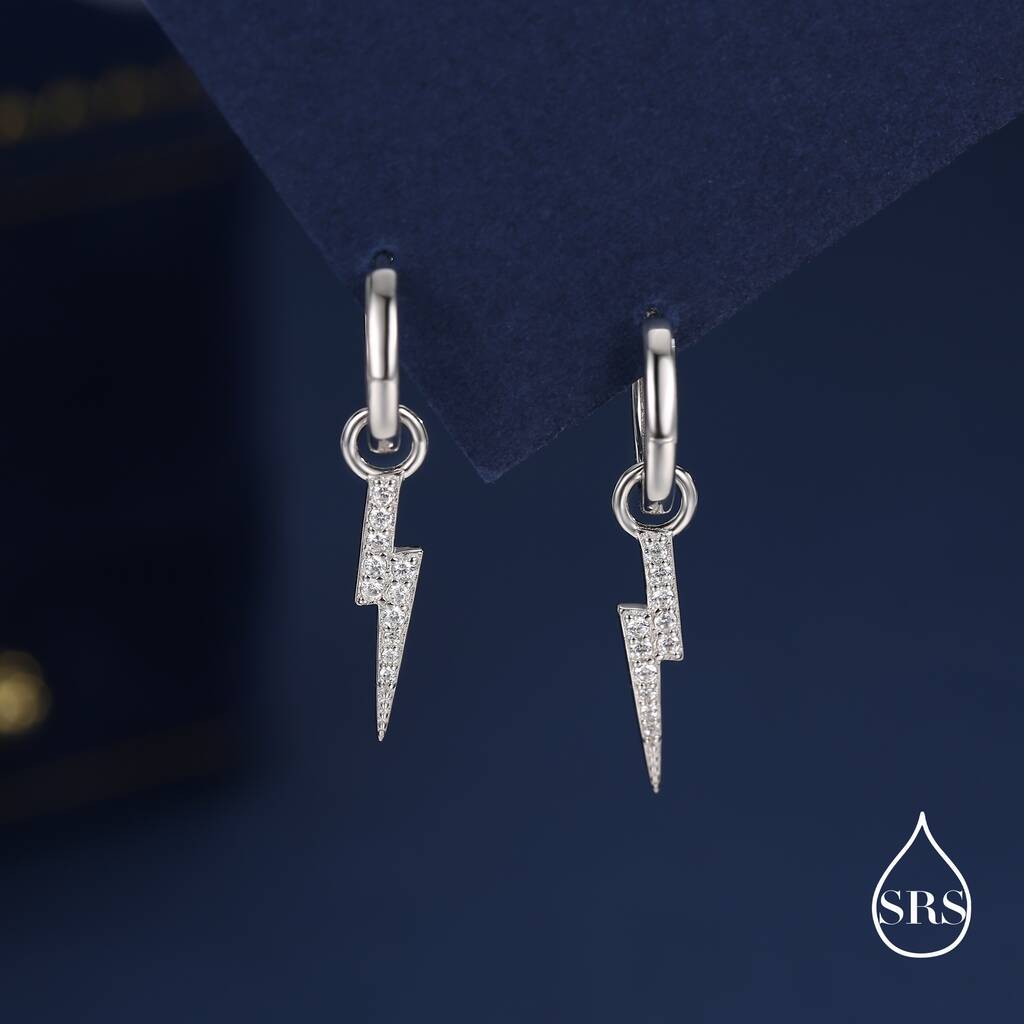 Sterling Silver Lightning Bolt Charm Huggie Hoop Earrings