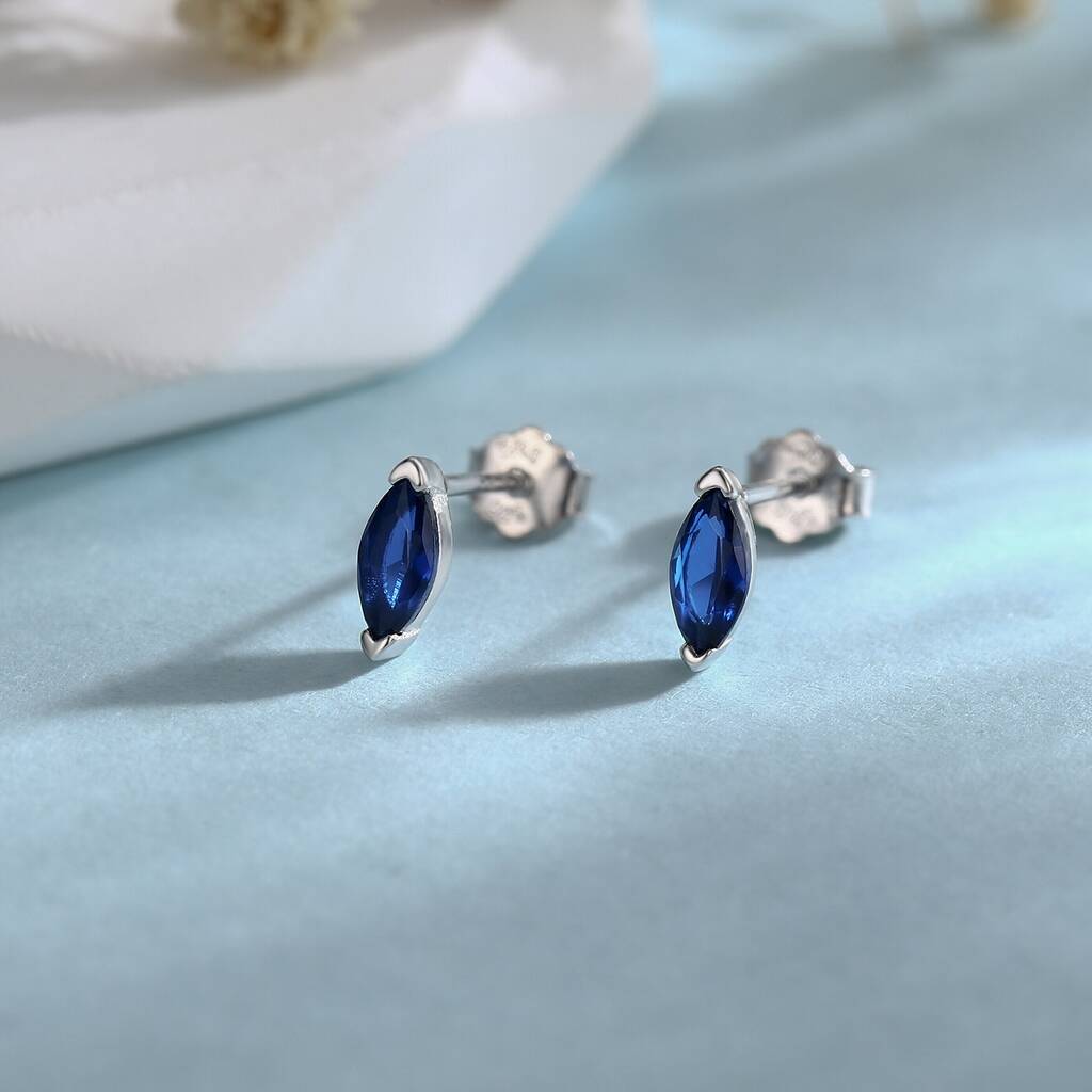 Sterling Silver Marquise Sapphire Blue Stud Earrings