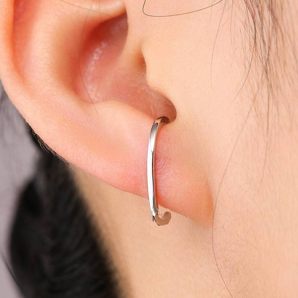 Sterling Silver Minimalist Skinny Earlobe Cuff Earring