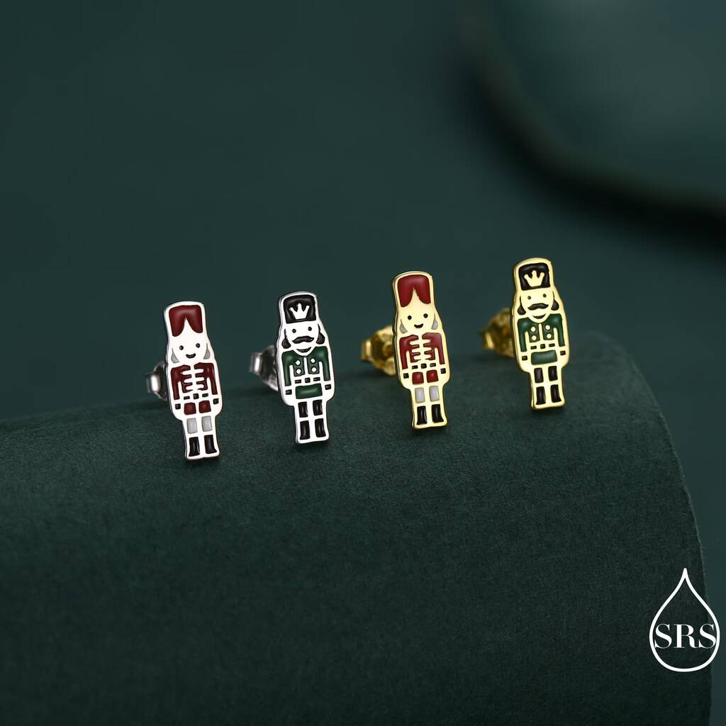 Sterling silver stud earrings featuring mismatched nutcracker designs, adding festive charm, playful detail, and a whimsical, stylish touch to holiday or everyday wear.