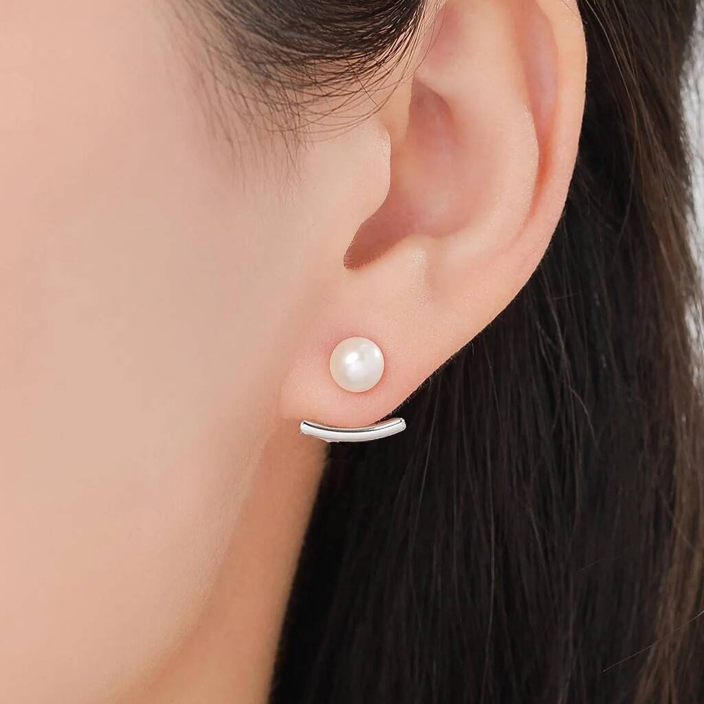 Sterling Silver Natural Freshwater Pearl And Bar Jacket Earrings