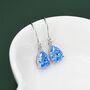 Elevate your look with our Sterling Silver Ocean Blue CZ Droplet Drop Earrings. Featuring vibrant ocean blue cubic zirconia in a sleek droplet design.
