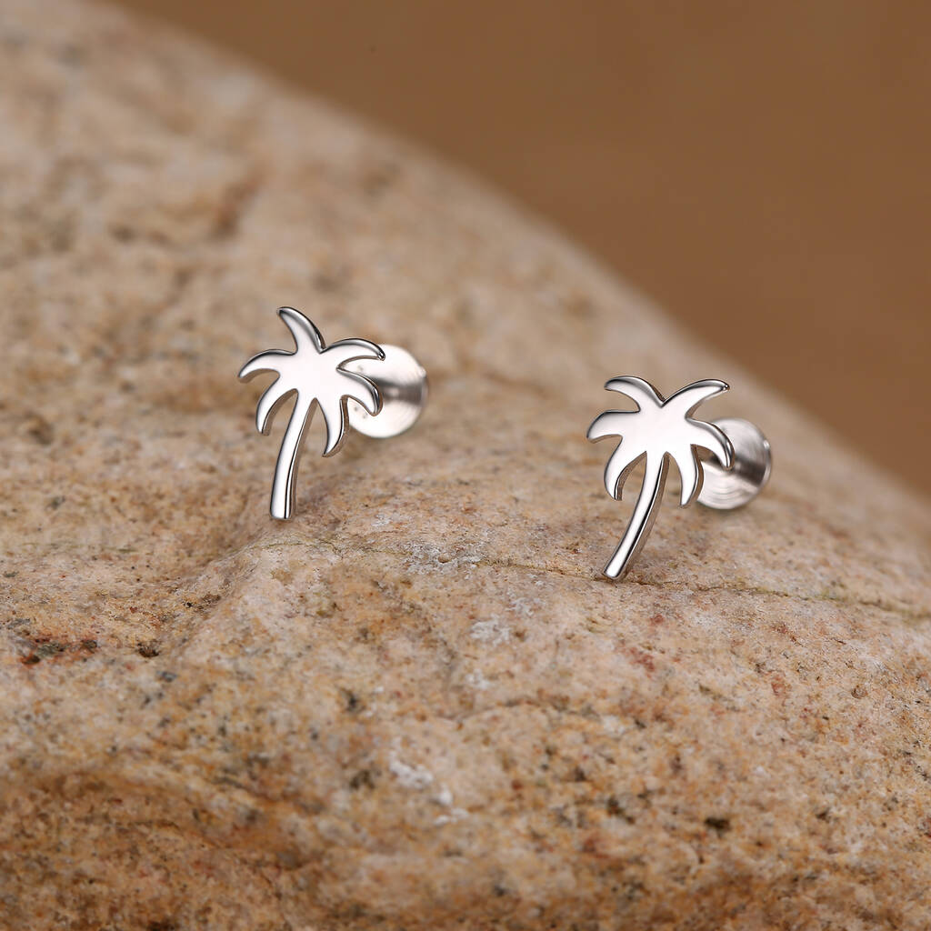 Sterling Silver Palm Tree 16 G Flat Back Earrings