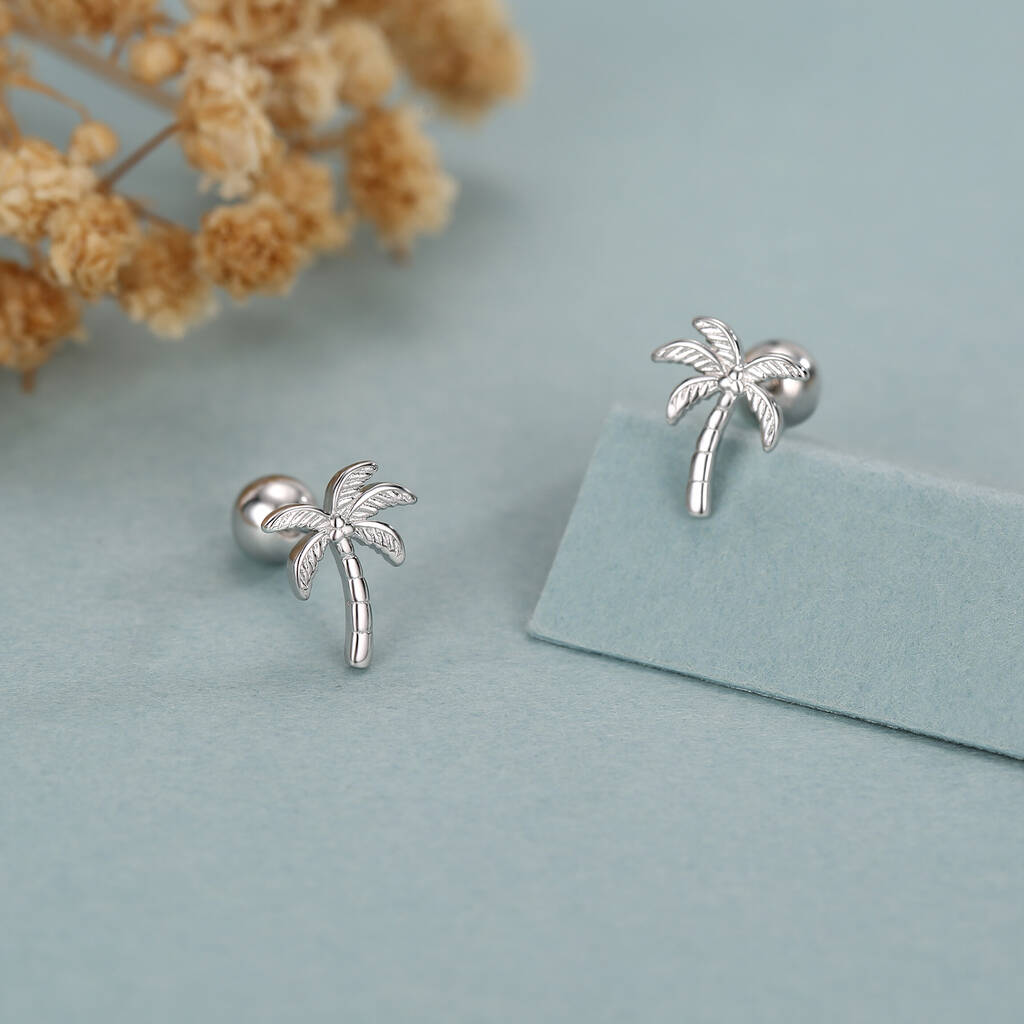 Bring tropical charm to your style with Sterling Silver Palm Tree 18G Screw Back Earrings with ball backs—playful, finely crafted, and secure for everyday wear.