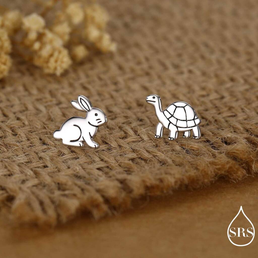 Celebrate playful woodland charm with Sterling Silver Rabbit and Tortoise Mismatched Stud Earrings—whimsical, finely detailed, and beautifully crafted for a unique everyday statement.