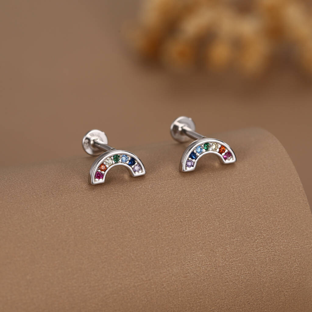 Sterling Silver Rainbow Cz 16 G Flat Back Labret Earrings