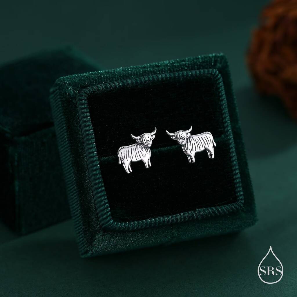 Sterling Silver Small Pair Of Highland Cow Screw Back Earrings, 1 of 10