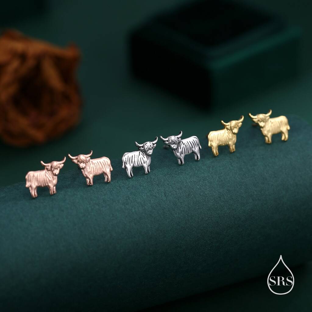 • Sterling Silver Small Pair Of Highland Cow Screw Back Earrings, thumbnail 10 of 10