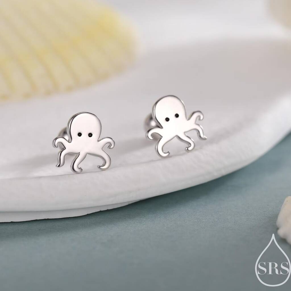 Sterling Silver Tiny Octopus Screw Back Earrings, 1 of 11