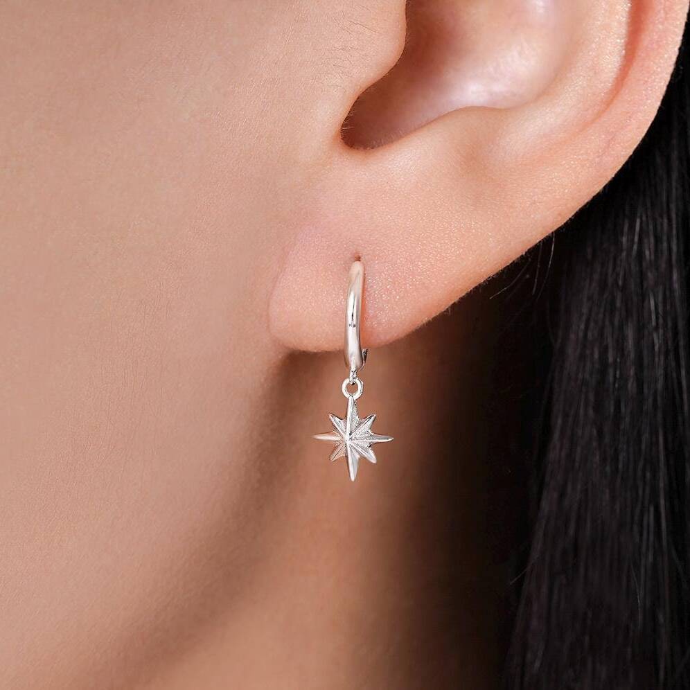 Sterling Silver Tiny Starburst Huggie Hoop Earrings
