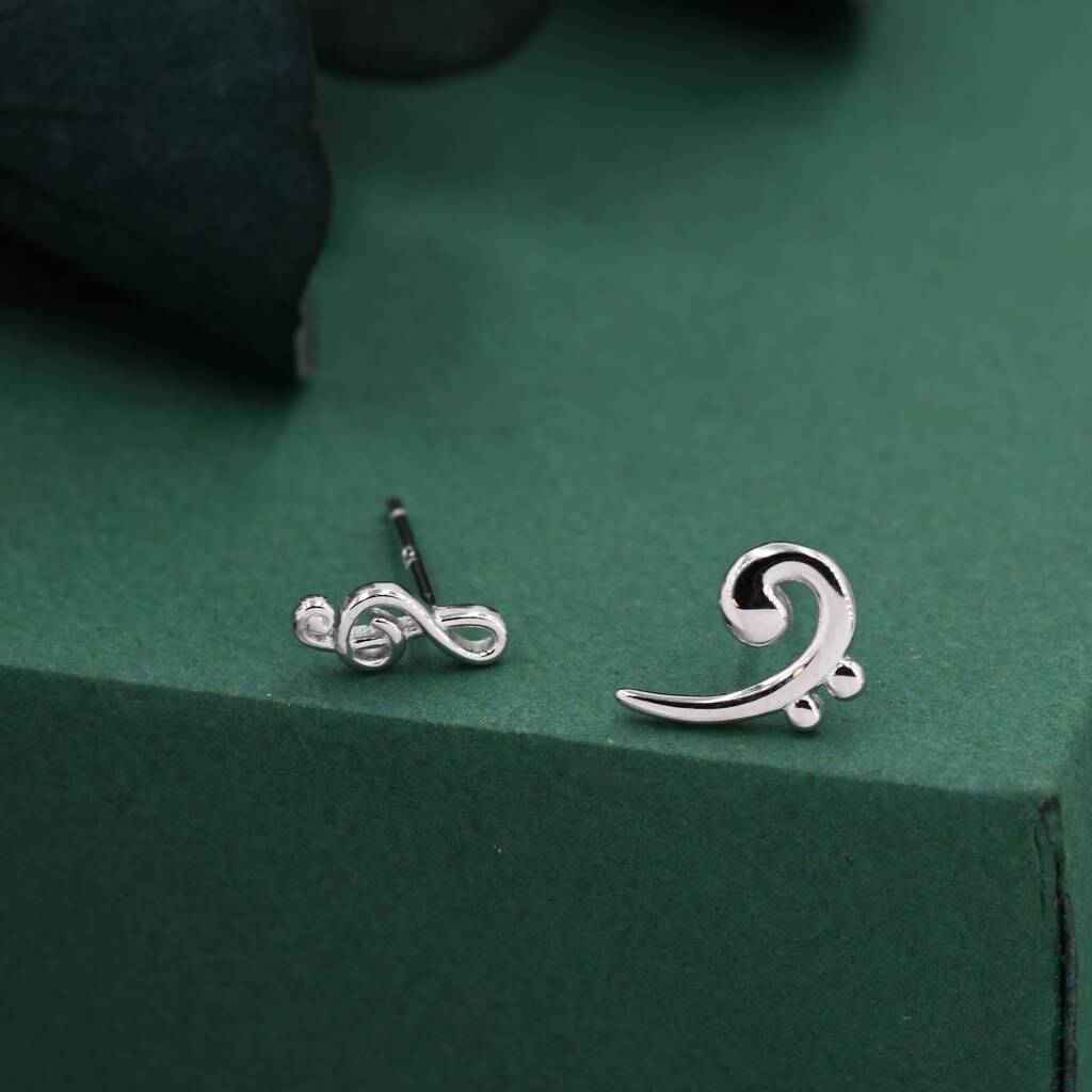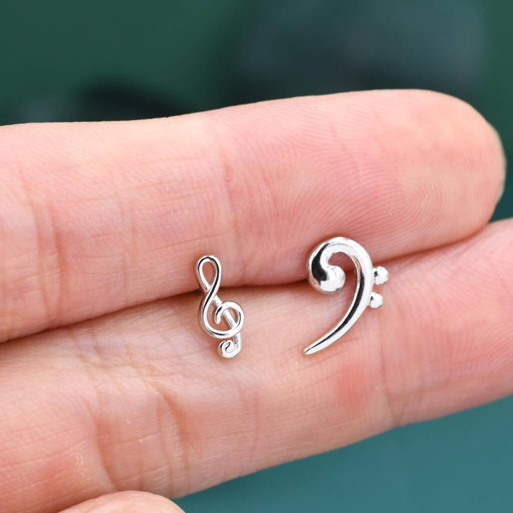 Sterling Silver Treble & Bass Clef Mismatched Stud Earrings – a musical-inspired pair, adding artistic rhythm and charm to your everyday style.