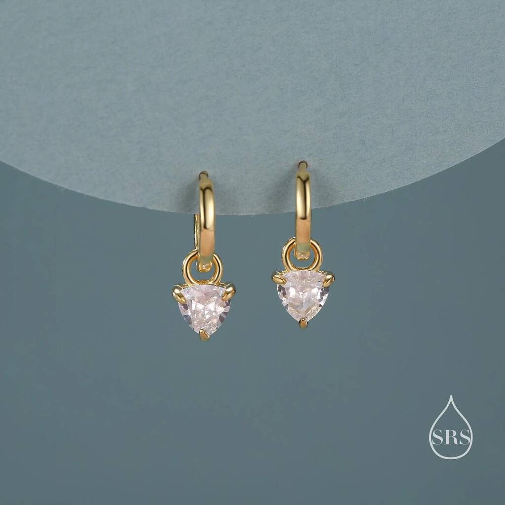 Sterling Silver Trillion Cut Cz Hoop Earrings