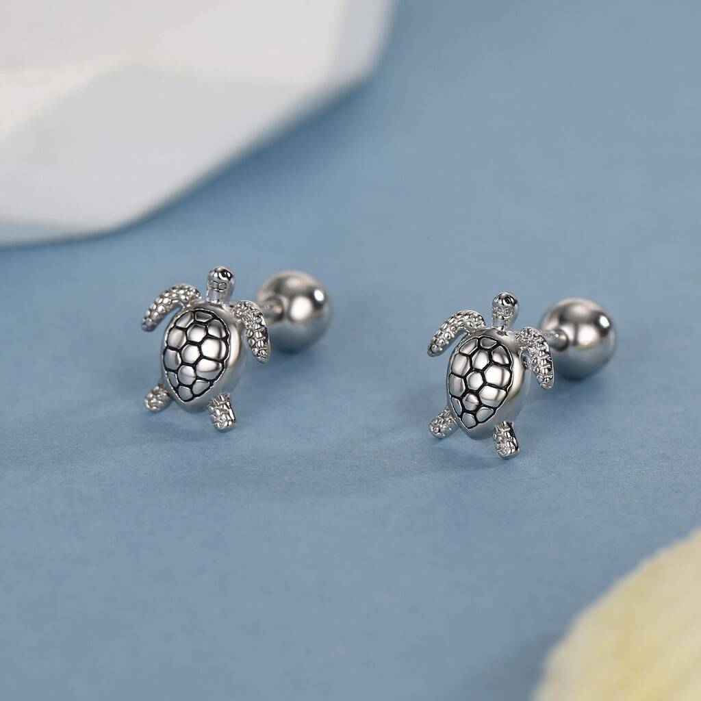 Bring ocean-inspired charm to your look with Sterling Silver Turtle Screw Back Earrings—detailed, secure, and beautifully crafted for a playful, nature-inspired everyday statement.