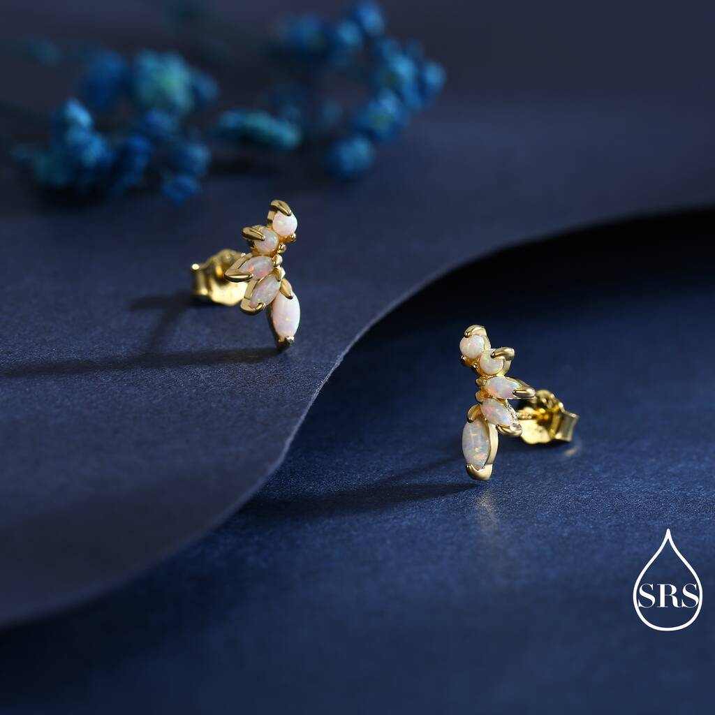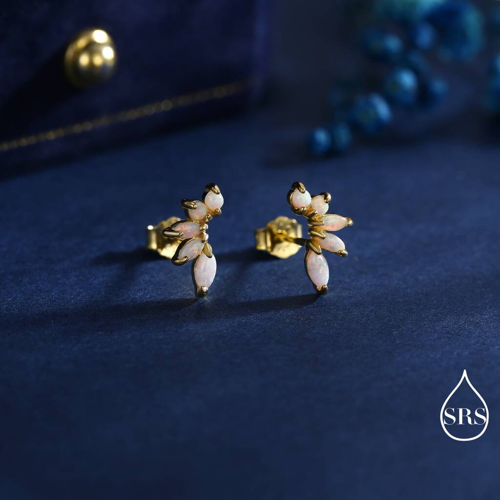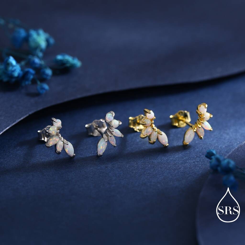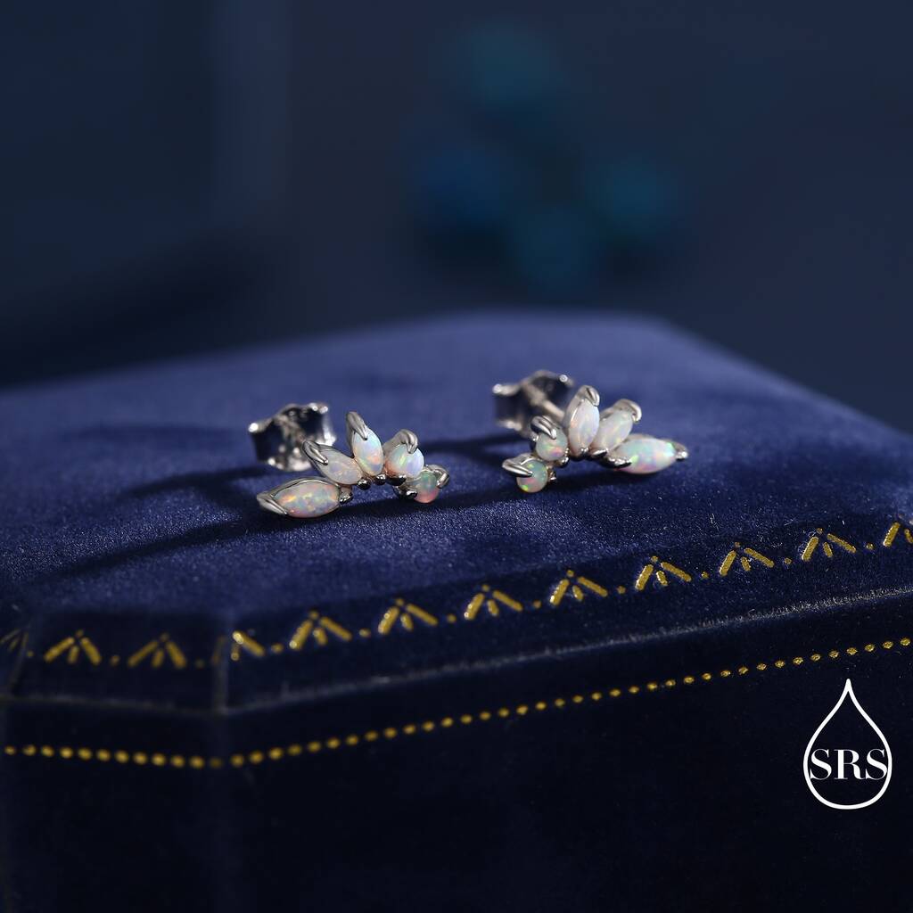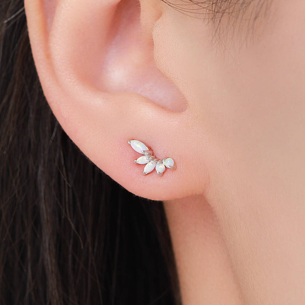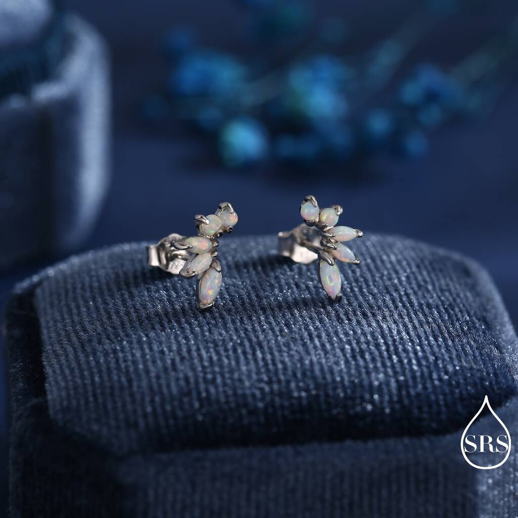 Adorn yourself with our Sterling-Silver White Opal Marquise Cluster Stud Earrings, perfect for adding a touch of ethereal elegance and sophisticated sparkle to any outfit.