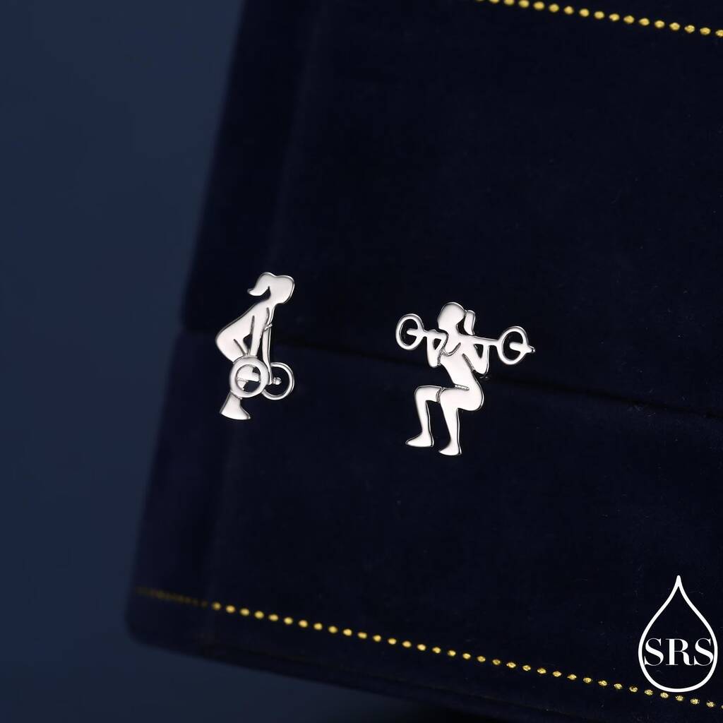 Strong Girl Barbell Stud Earrings In Sterling Silver