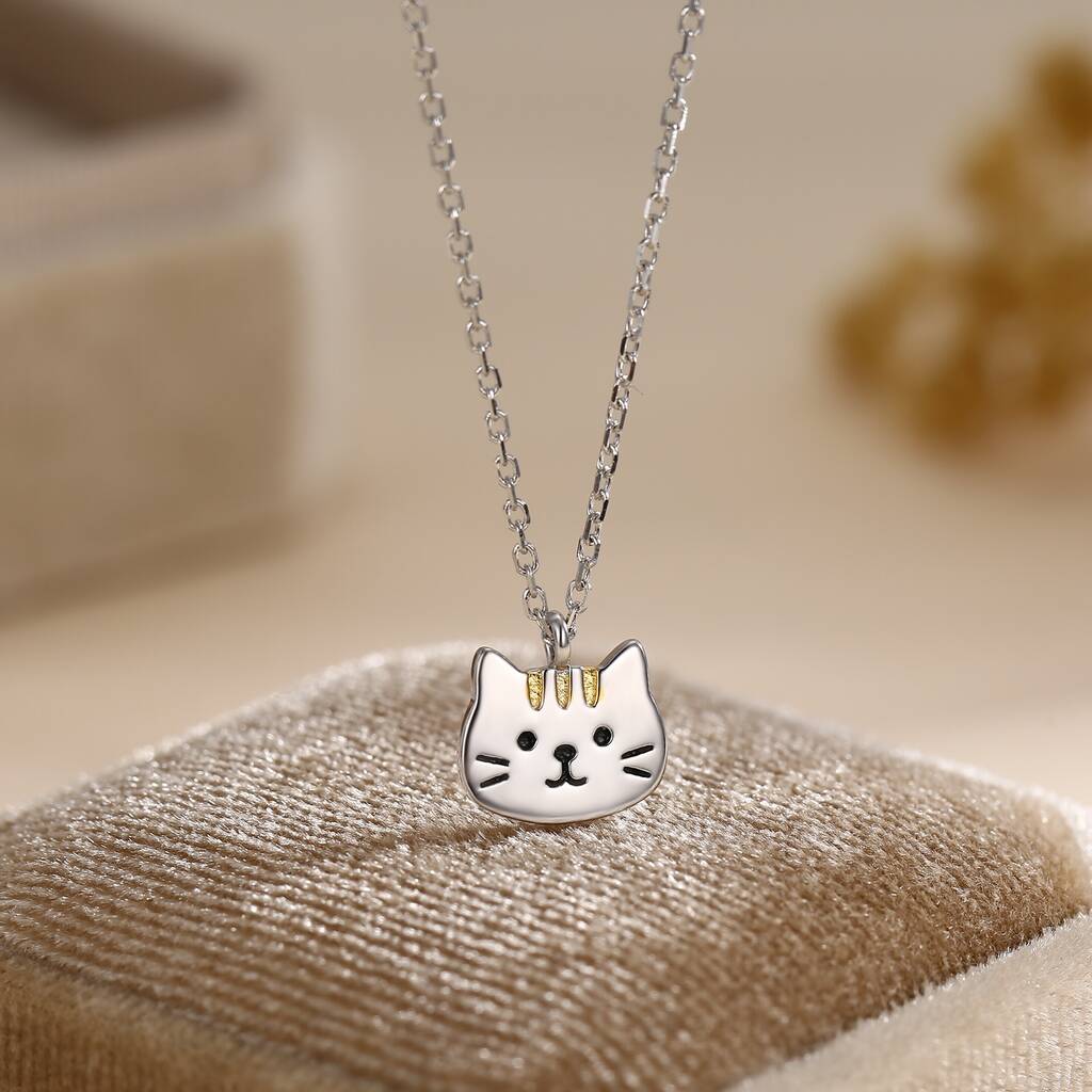 Elegant handcrafted Tabby Cat Pendant Necklace. Celebrate the allure of feline companions. Ideal as a gift for National Cat Day and cat lovers