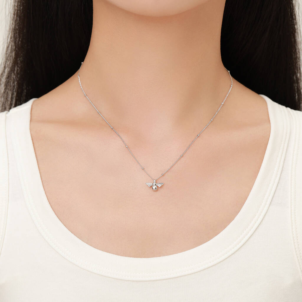 Sweet and nature-inspired, this sterling silver tiny bumble bee pendant necklace adds a touch of whimsical charm—perfect for everyday wear with a playful buzz.