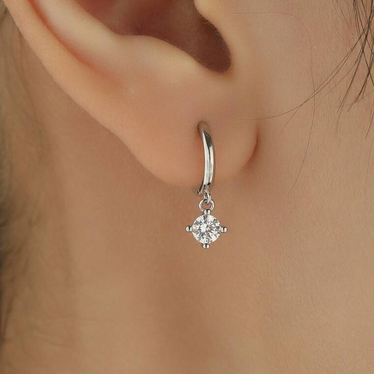 Tiny Cz Huggie Hoop In Sterling Silver