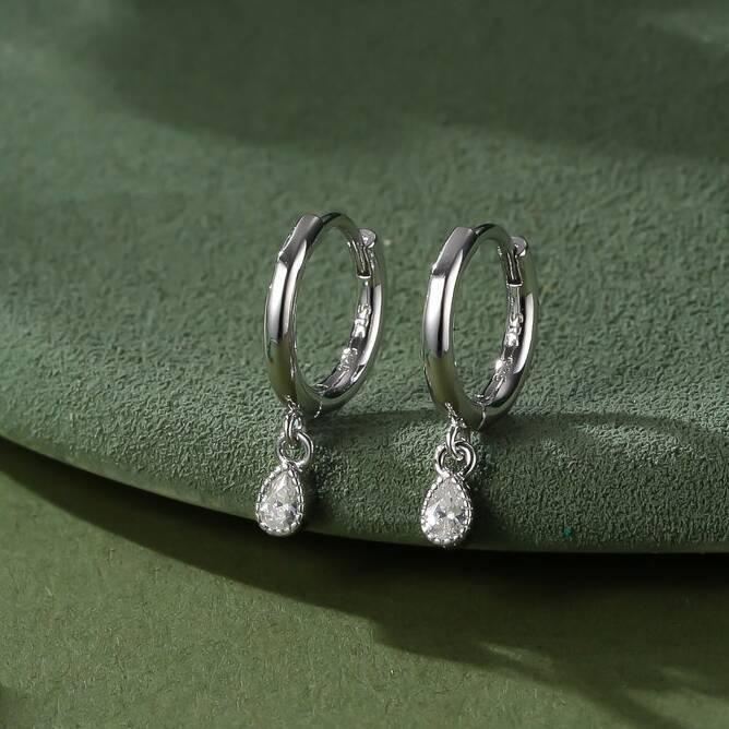 Embrace subtle elegance with our Tiny Dotted Droplet CZ Huggie Hoop Earrings, a delicate design that adds a whisper of sparkle to your everyday look.