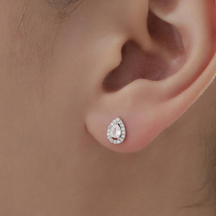 Tiny Droplet Cz Halo Stud Earrings In Sterling Silver