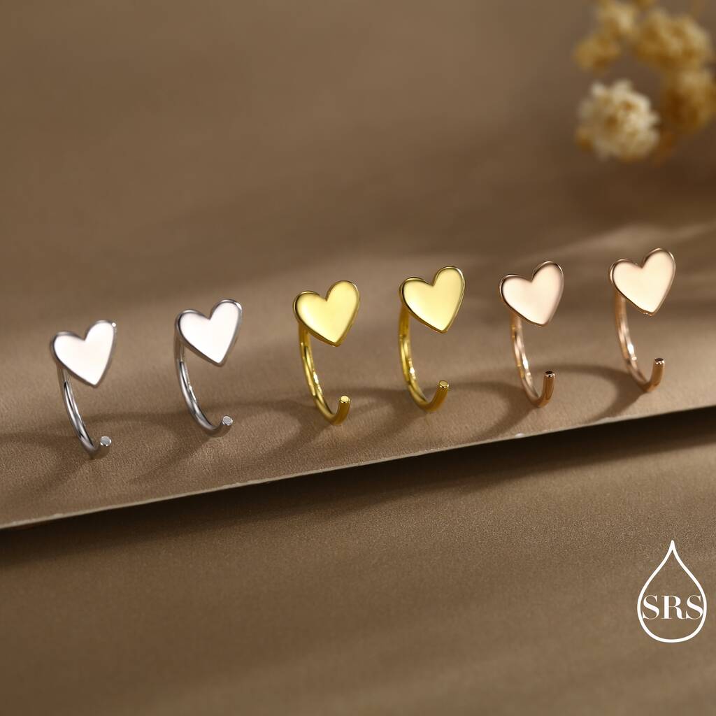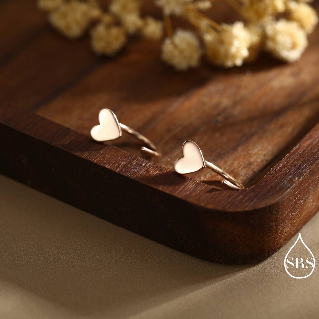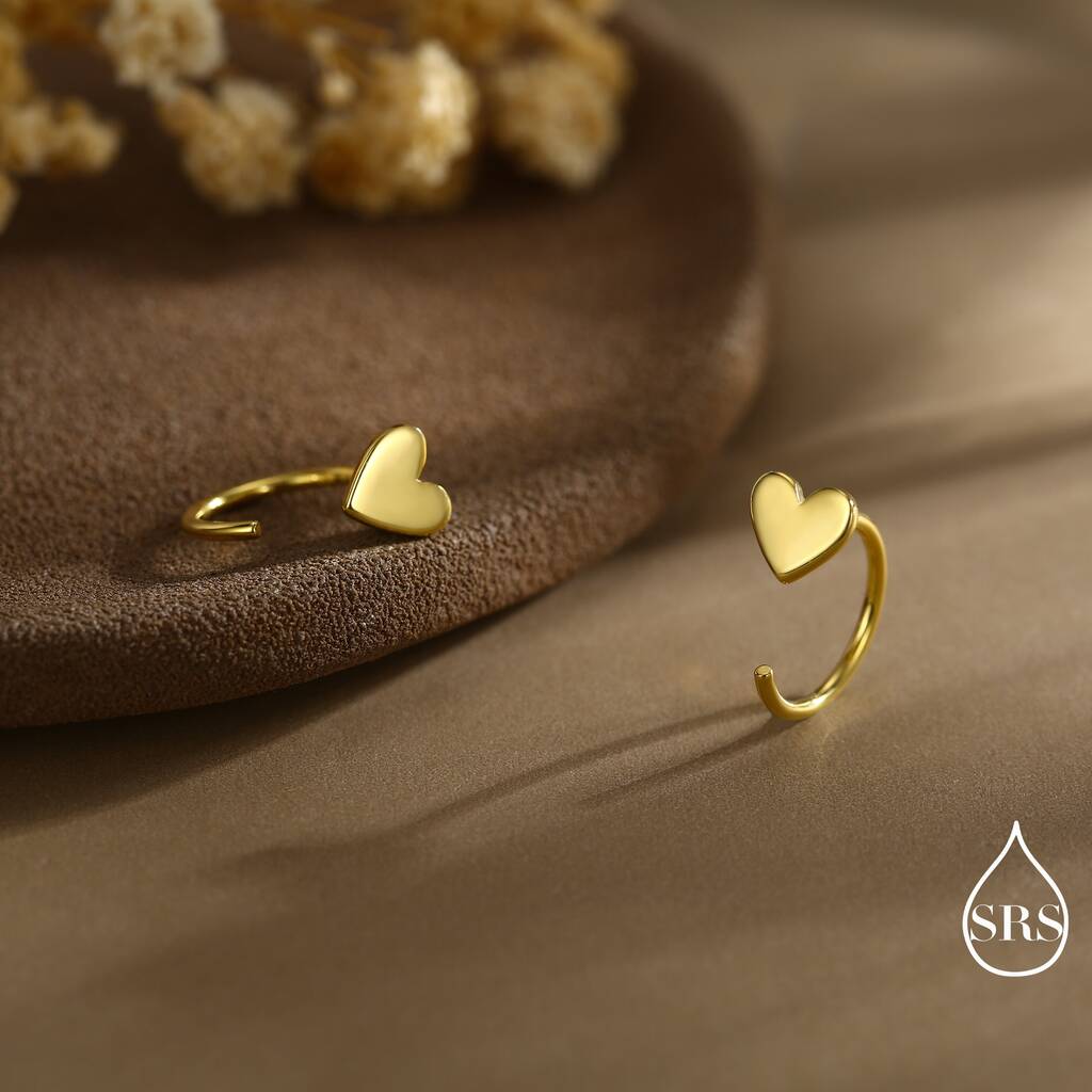 Tiny Heart Huggie Hoop Earrings In Sterling Silver