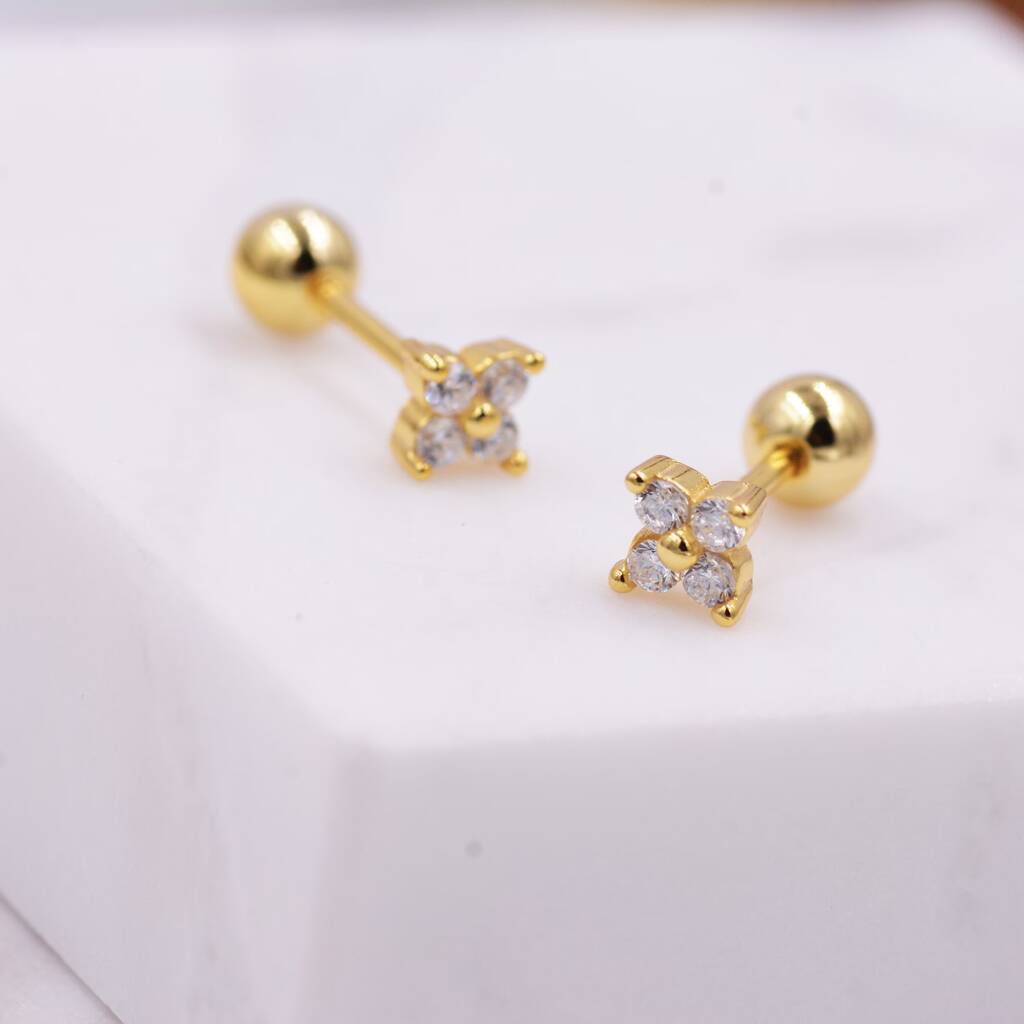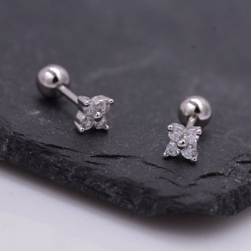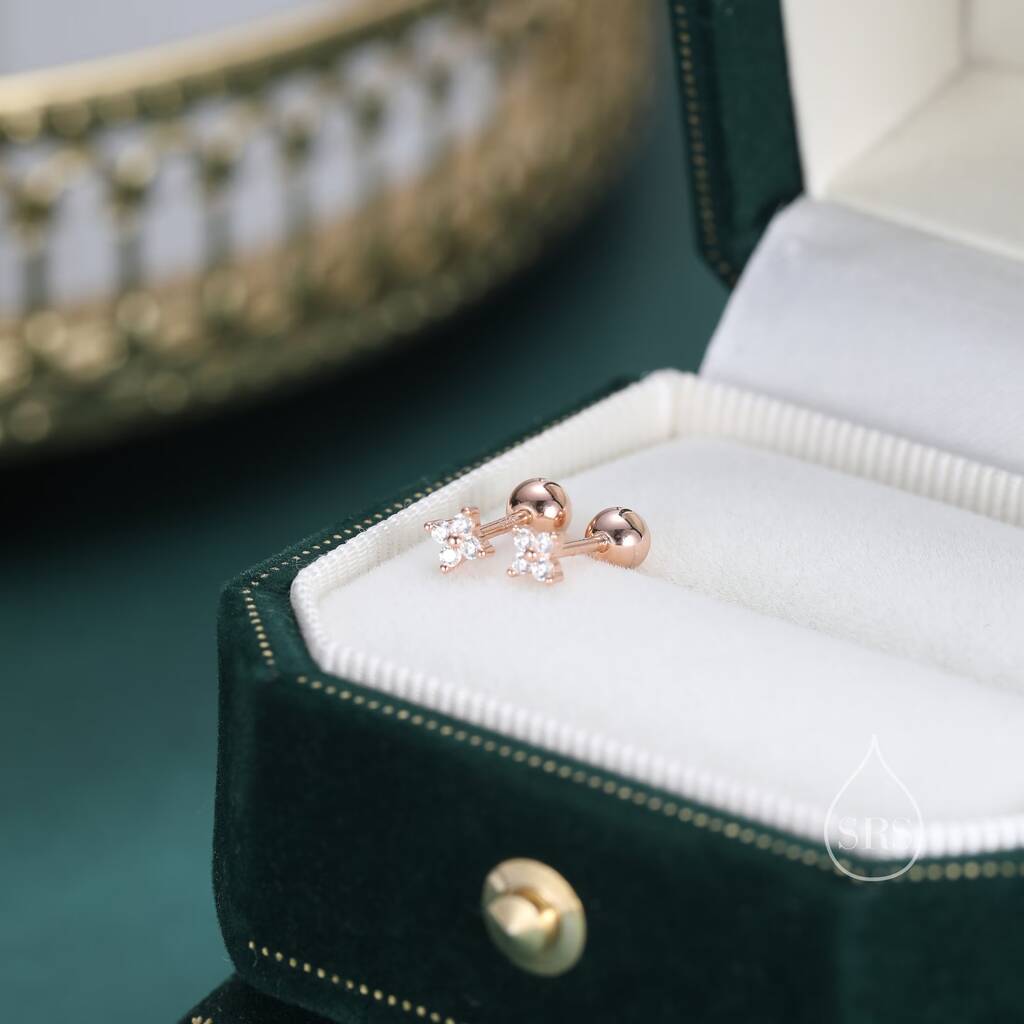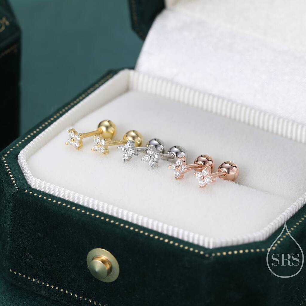 Tiny Hydrangea Flower-Inspired Screw-Back Earrings in Sterling Silver — delicate floral studs with secure screw backs, adding subtle charm, elegant sparkle to everyday wear.