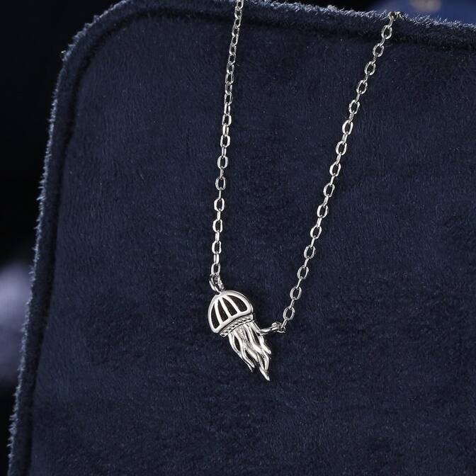 Tiny Jellyfish Pendant Necklace In Sterling Silver
