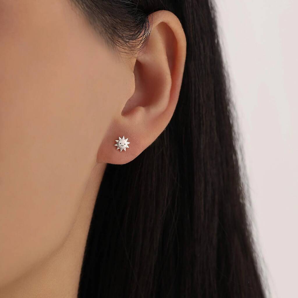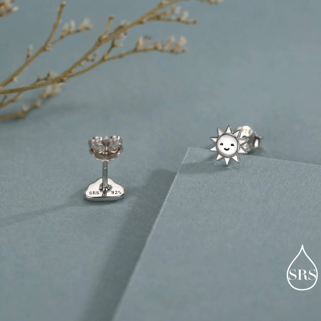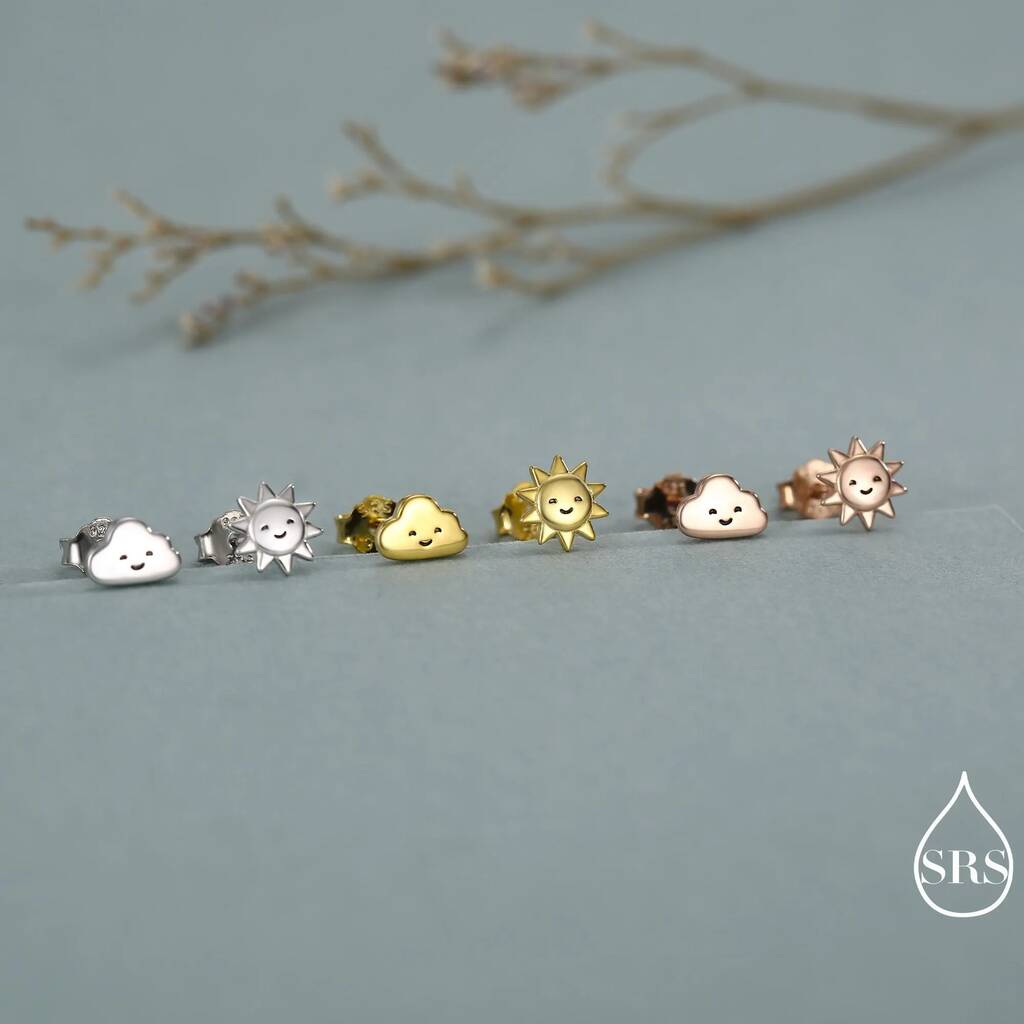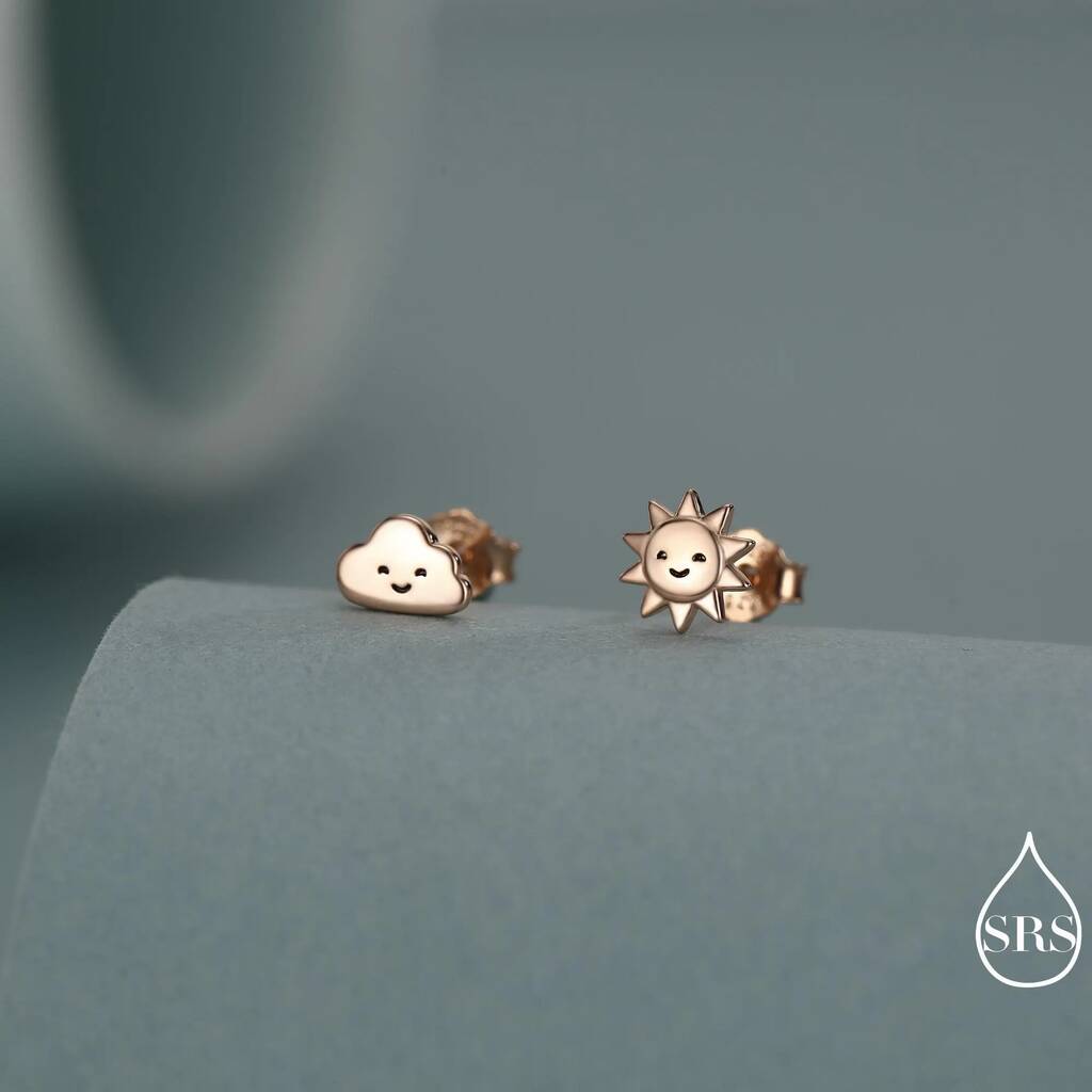 Tiny Mismatched Sun And Cloud Stud Earrings In Sterling Silver