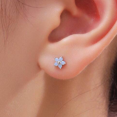 Sterling Silver Tiny Opal Blue Cz Flower Stud Earrings