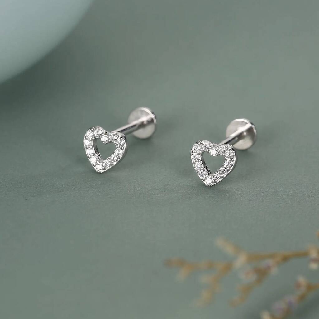Tiny Open Heart Internally Threaded Flat Back Earrings In Sterling Silver