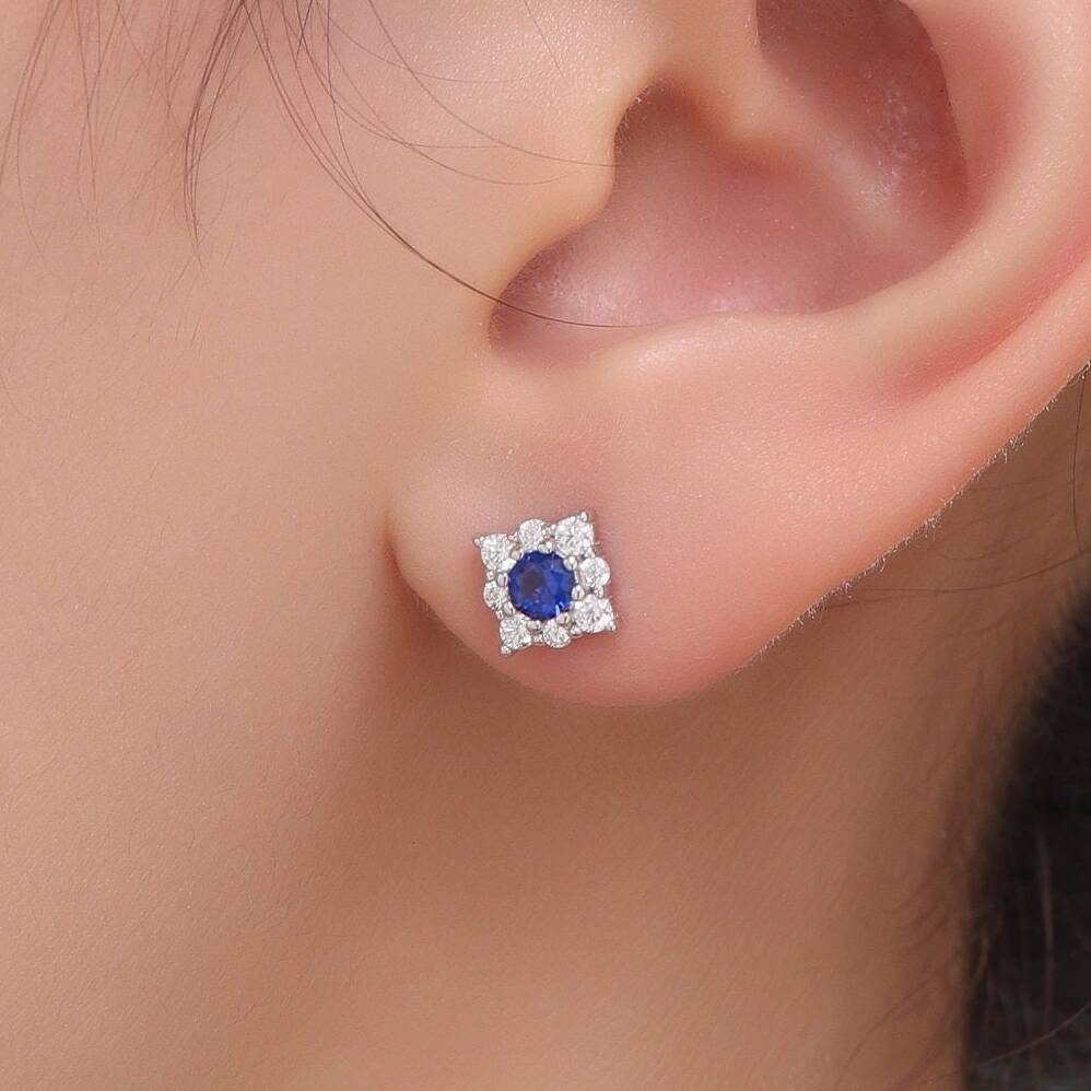 Sterling Silver Tiny Sapphire Blue Cz Halo Stud Earrings