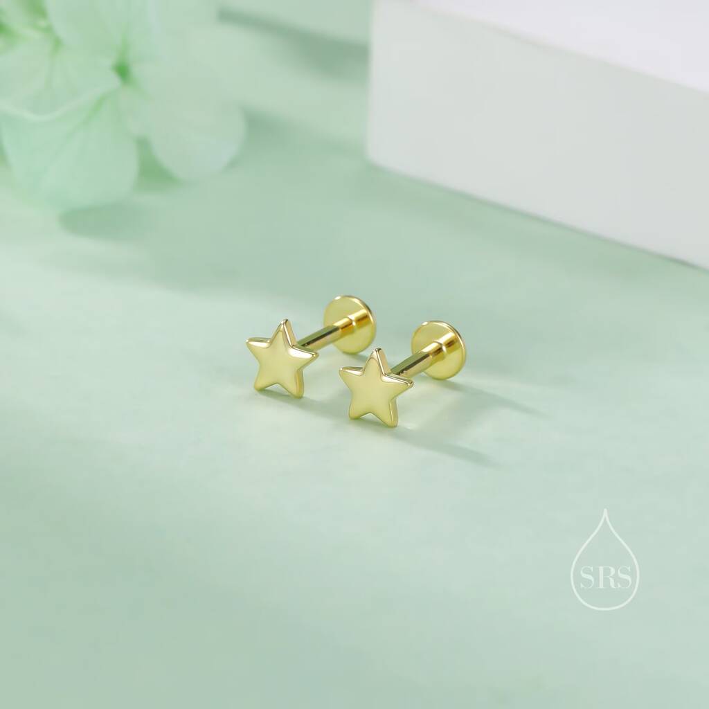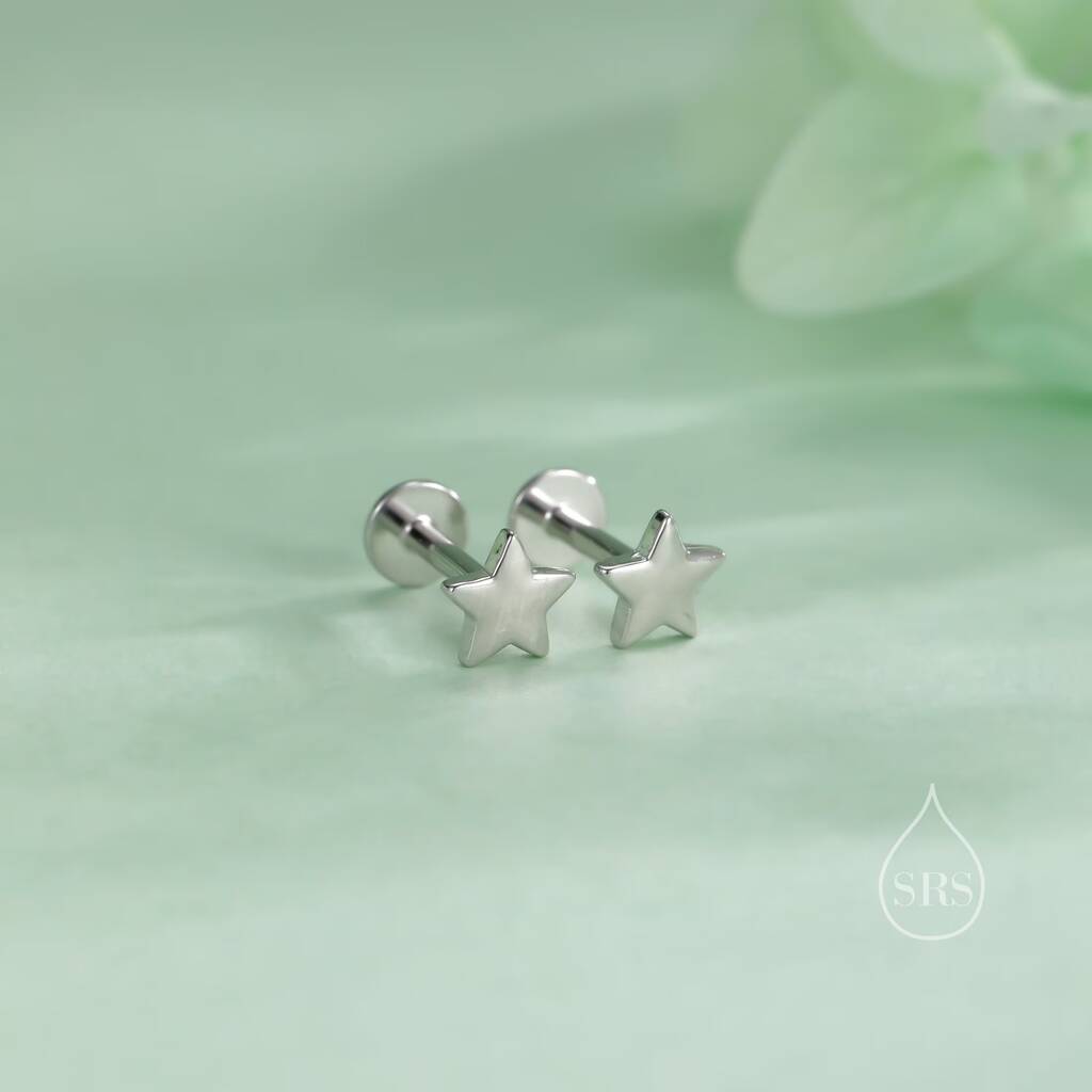 Tiny Star Internally Threaded Flat Back Earrings In Sterling Silver