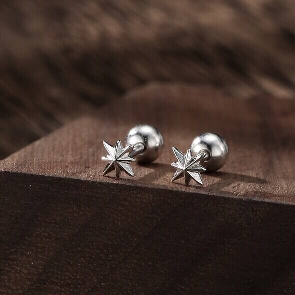 Dainty starburst screw-back earrings in sterling-silver. Embrace celestial charm with a touch of modern elegance. Ideal for adding a subtle statement to your daily look.