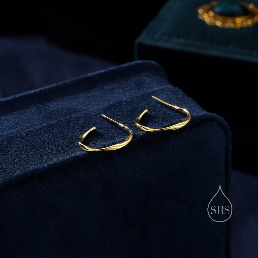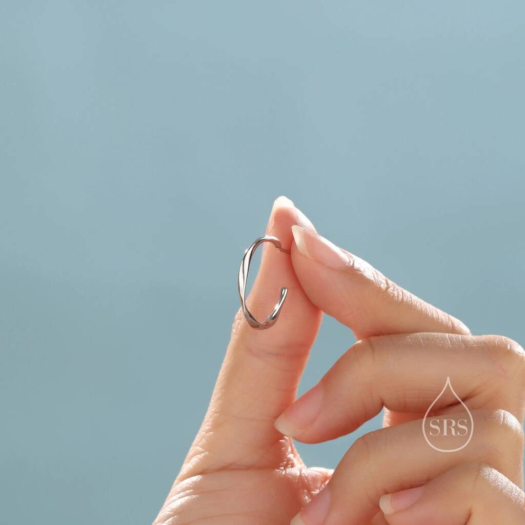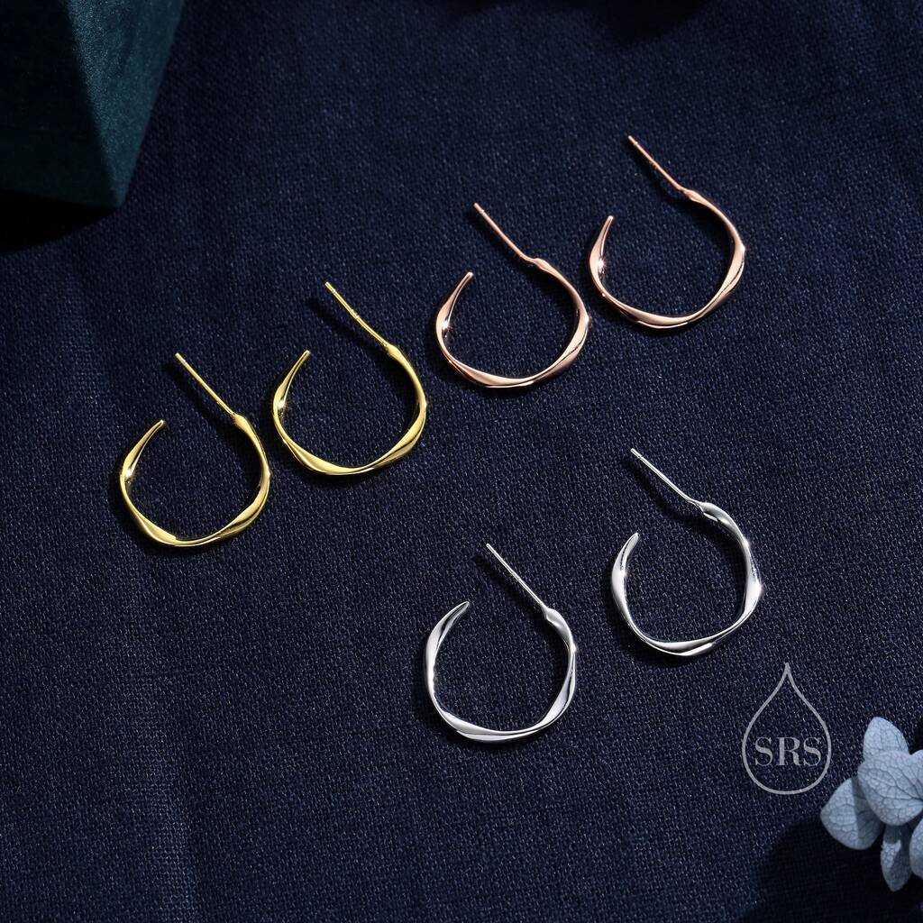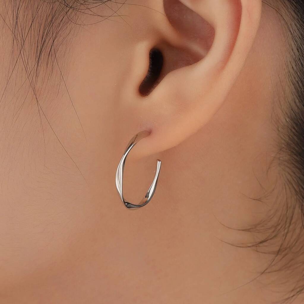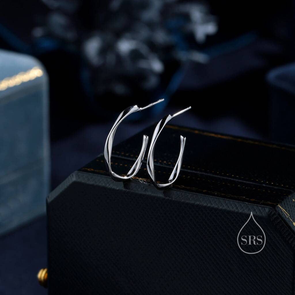 Twisted Strip Mobius Band Large Semi Hoop Stud Earrings In Sterling Silver