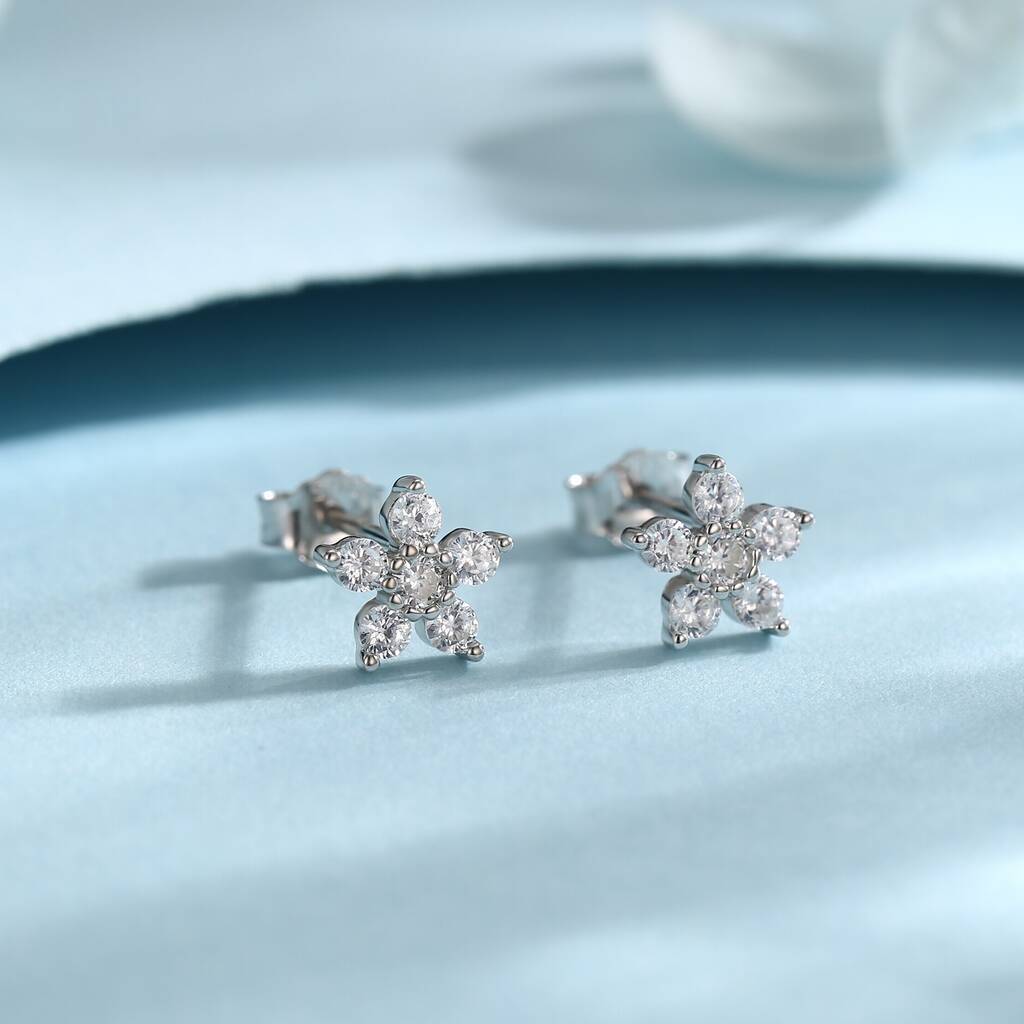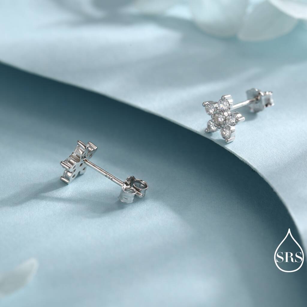 Uncoloured Forget Me Not Flower Cz Stud Earrings