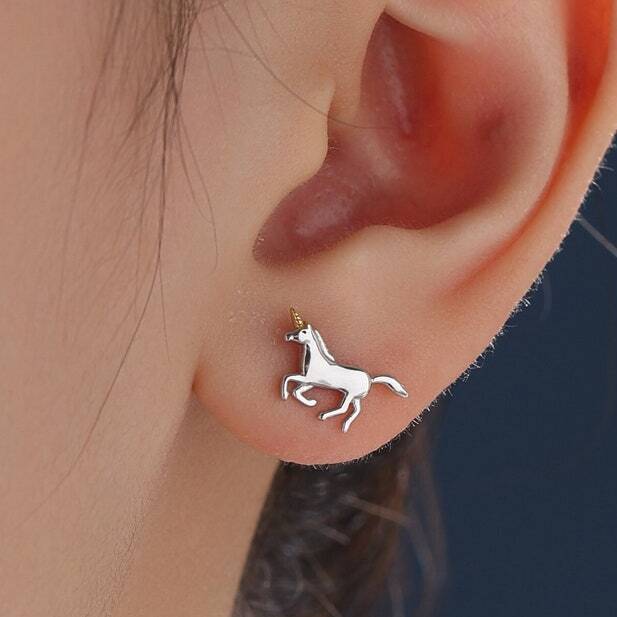 Unicorn Stud Earrings In Sterling Silver