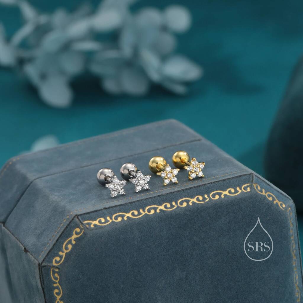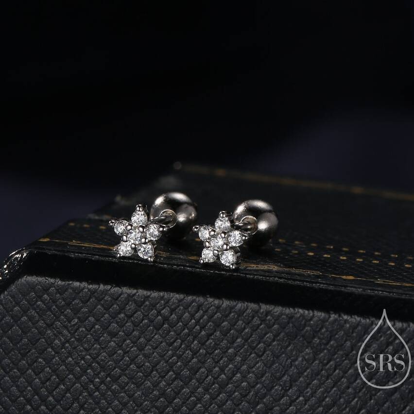 Add a delicate-sparkle to your look with Tiny-Flower-CZ Internally-Threaded Earrings. These earrings offer a subtle yet elegant-touch, adding a bit of floral-inspired charm to any-outfit.
