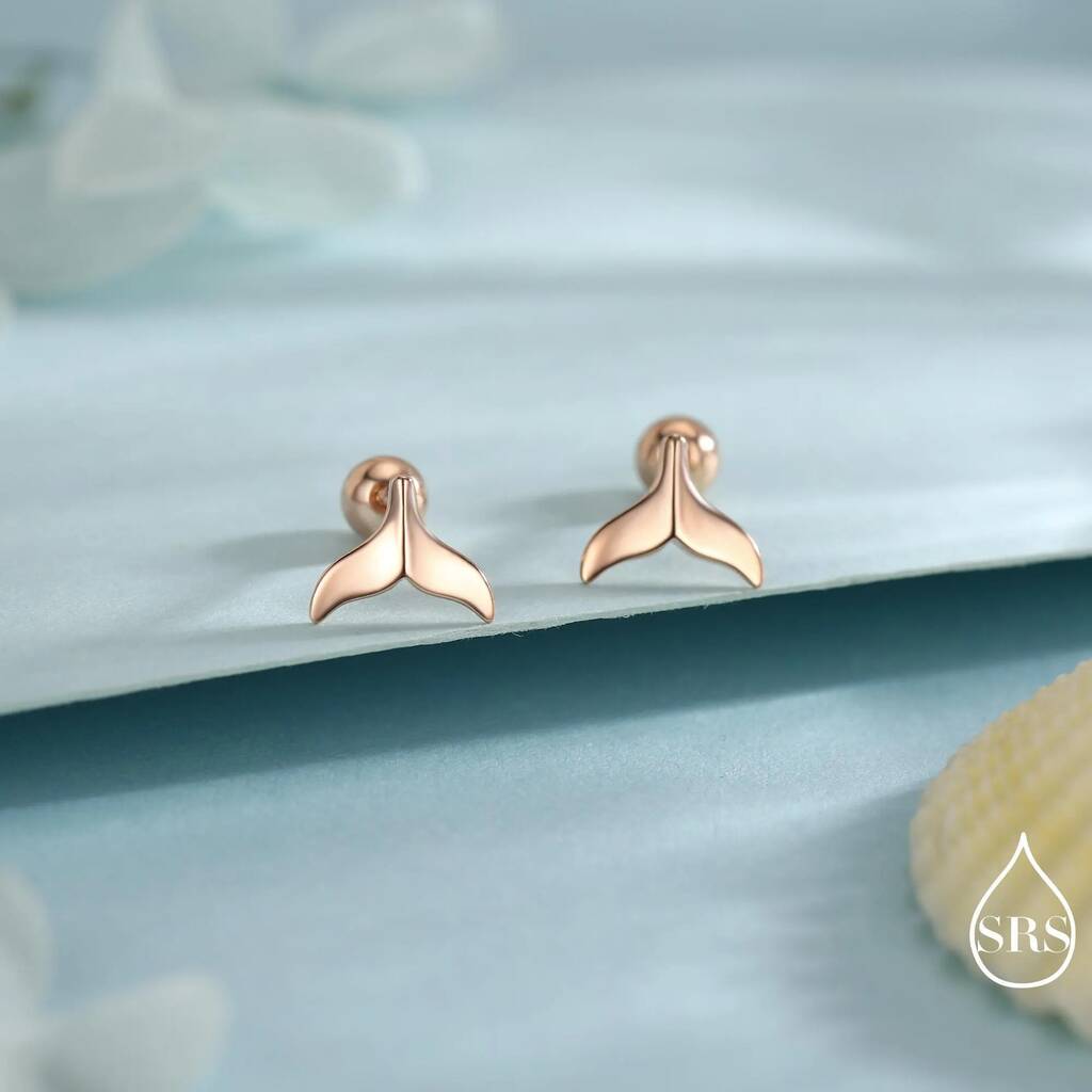 Sterling silver studs featuring whale tail designs with secure screw-backs, adding ocean-inspired charm, graceful elegance, and a unique, stylish touch to everyday wear or gifting.