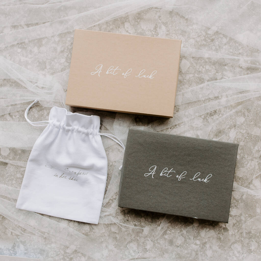 You may select from cloth bag letterbox friendly, a plain branded gift box or a hand calligraphied gift box with "A Bit Of Luck" for an extra special touch. The free gift wrap is a Merry Xmas cloth gift bag