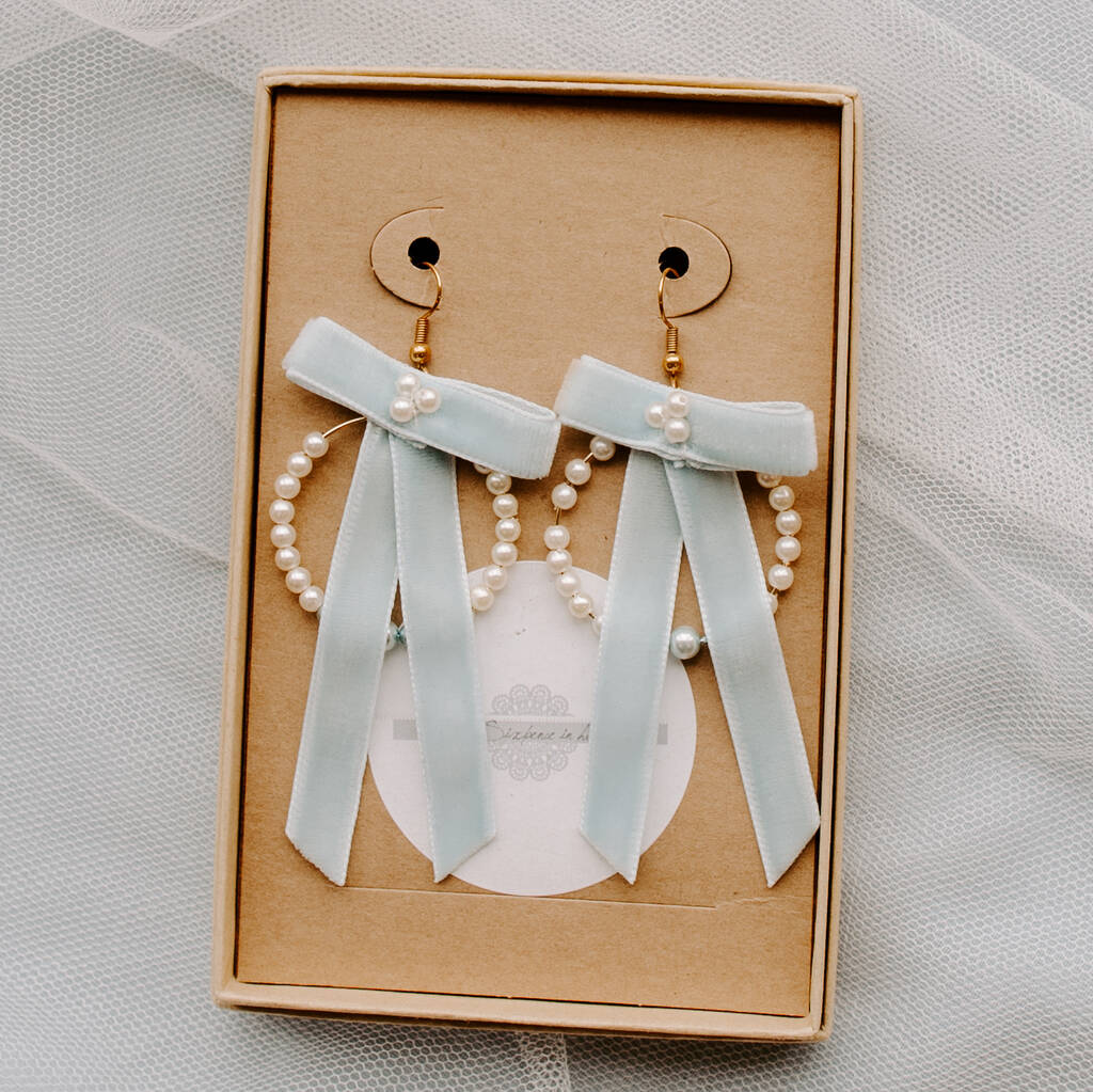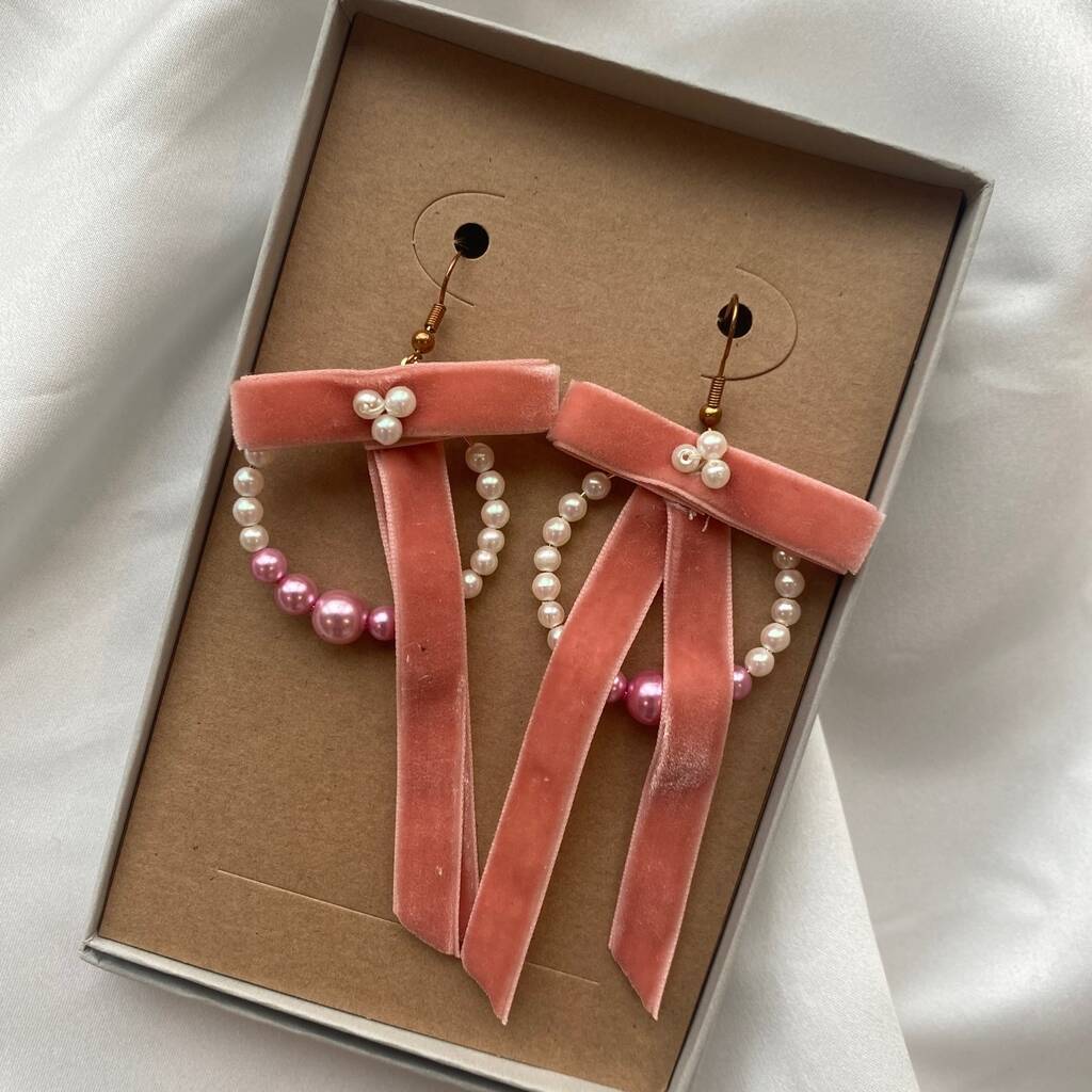 Velvet Bow And Hand Beaded Hoop Earrings