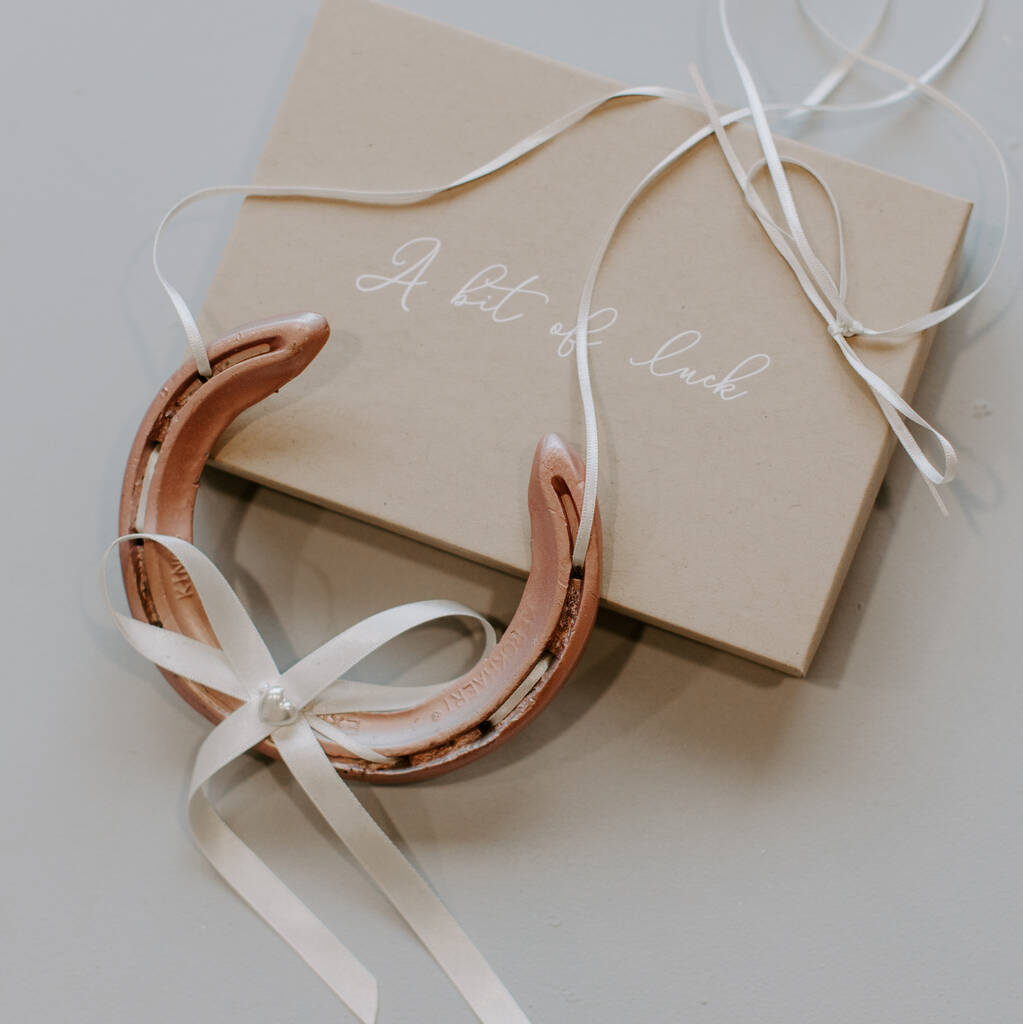 The belief that horseshoes are a gift that brings luck to a couple is centuries old. They make a lovely addition to a bridal bouquet or may be carried as an alternative to the traditional floral bouquet for the bride, their bridesmaids or flowergirls. Horseshoes make a perfect keepsake to be passed down through the generations.