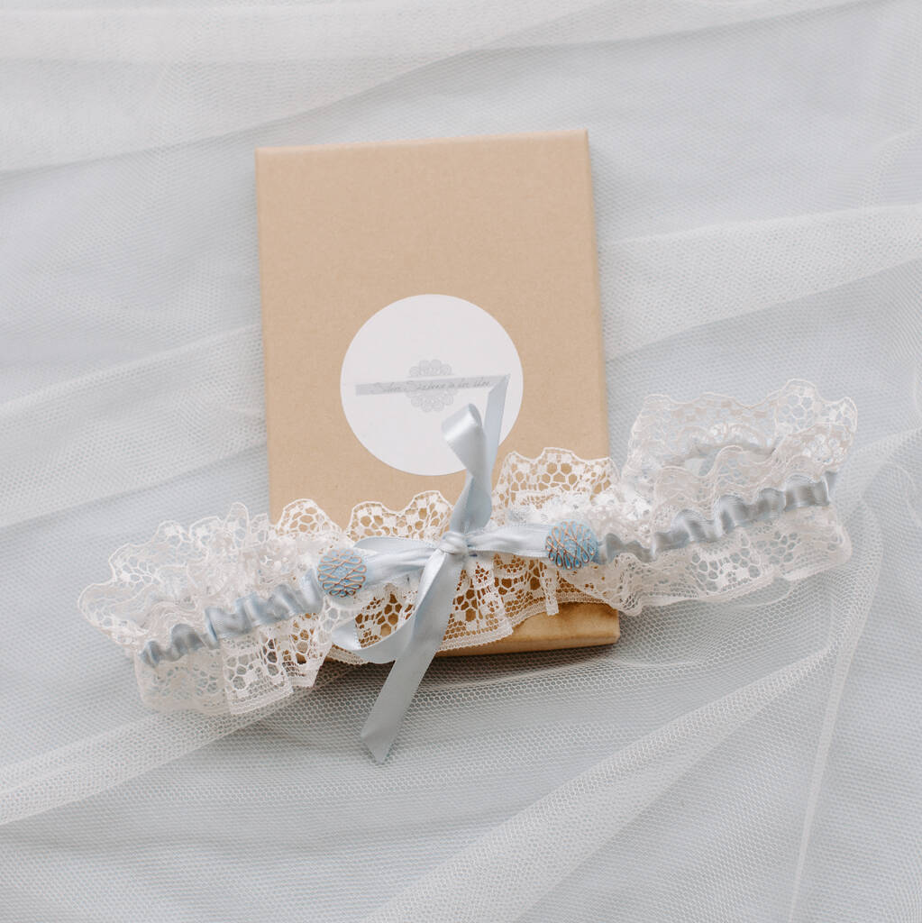 Something Blue Tie Style Vintage Button Garter