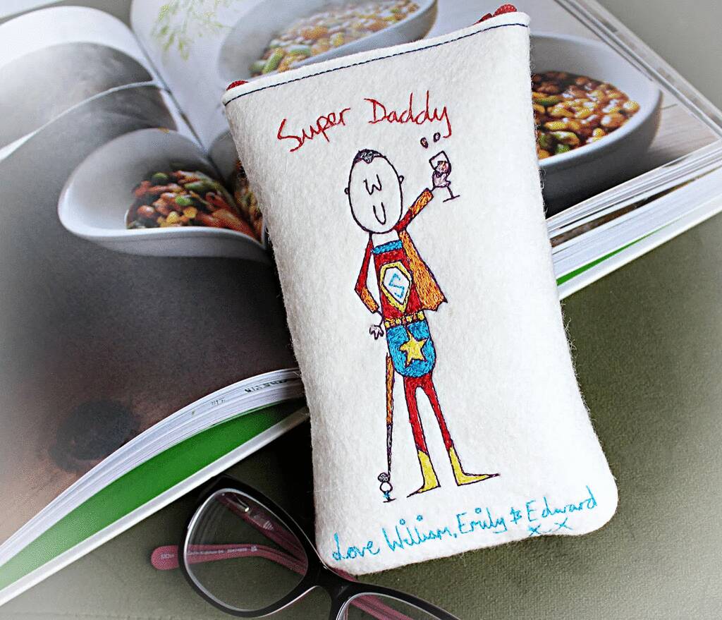 Personalised Super Dad Hand Embroidered Glasses Case – Custom Father’s Day Gift
