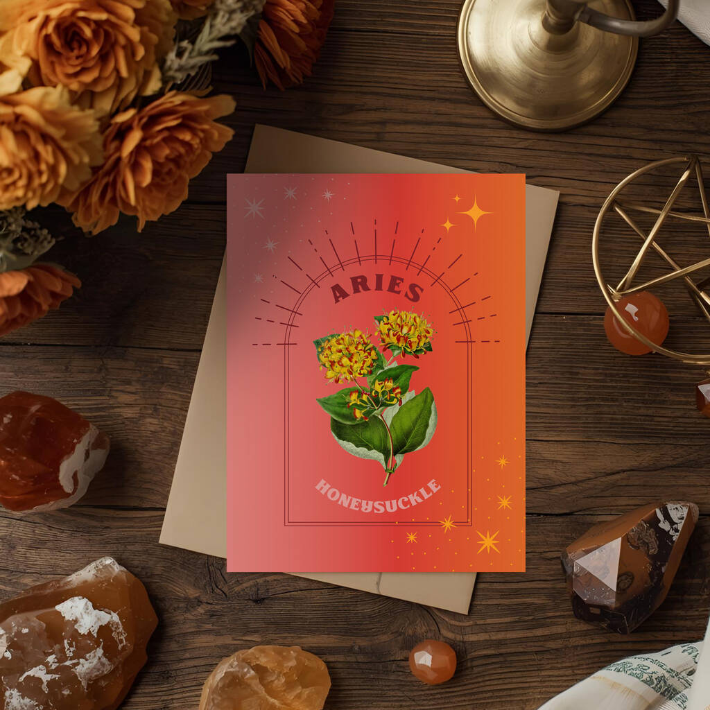 Aries Zodiac Flower Card