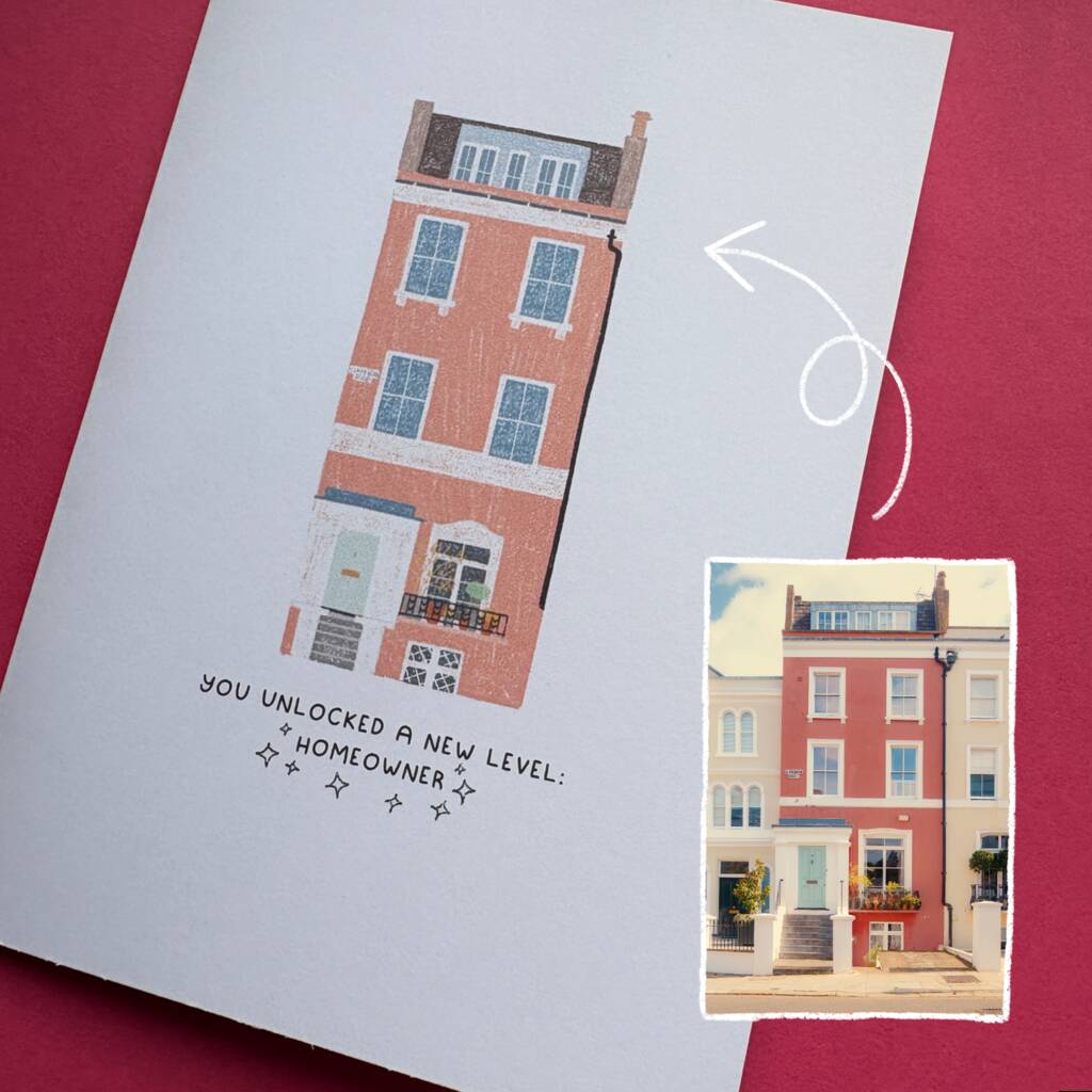 Personalised Illustrated house portraits are available in A4 and A5 sizes, giving you flexibility to choose the right fit. You can order a print of your home on its own, or add a frame for an additional cost. Frame options include black, white, or a wood-effect finish.