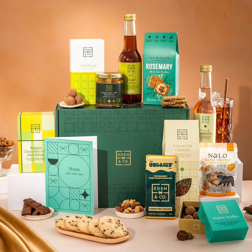 Your hamper arrives in our signature EDEN & CO. presentation box, measuring approximately 30cm x 24cm x 10cm and weighing around 2kg. Inside, it’s cushioned with soft paper ruffles for both protection and the pleasure of unveiling. A personalised gift card rests within, ready to be discovered. For its journey, your hamper is placed in a bespoke double-wall postal outer, sealed for secure and discreet delivery.
