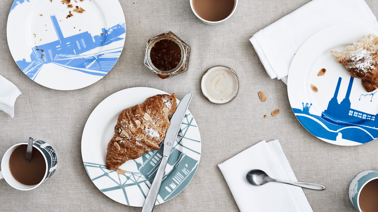Her work celebrates urban and rural landscapes through an ongoing exploration of the theme of souvenirs and keepsakes. Themes in her design include iconic city landscapes such as the London bridges and landmarks in her River Series collection of mugs, plates and linen.