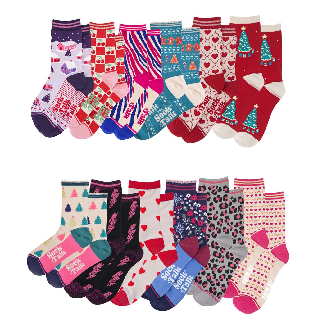 12 Day Christmas Advent Calendar Graphic Prints Bamboo Socks Women's