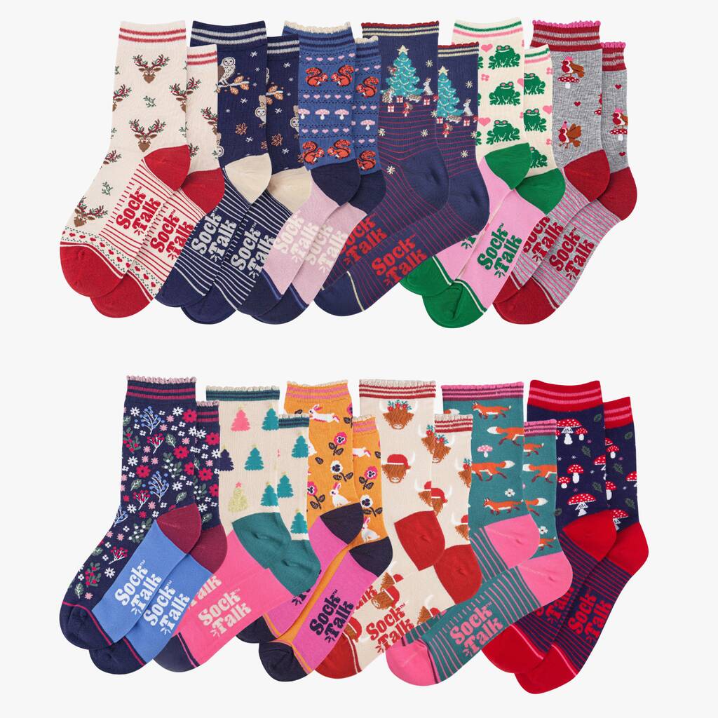 12 Day Christmas Advent Calendar Woodland Animals Bamboo Socks Women's