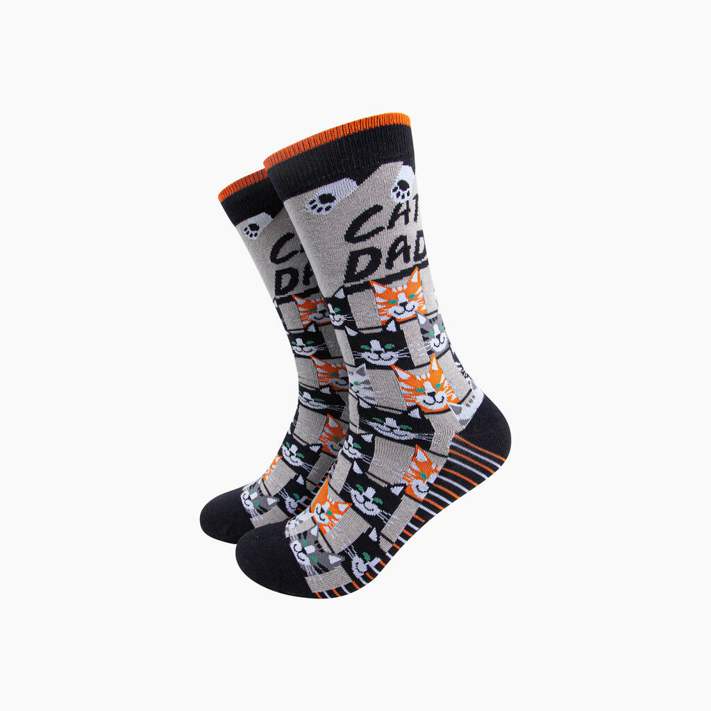 Cat Dad Combed Cotton Novelty Socks In Grey/Black